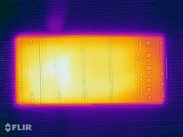 (-) A felső oldalon a maximális hőmérséklet 55.4 °C / 132 F, összehasonlítva a 35.2 °C / 95 F átlagával , 21.9 és 247 °C között a Smartphone osztálynál.