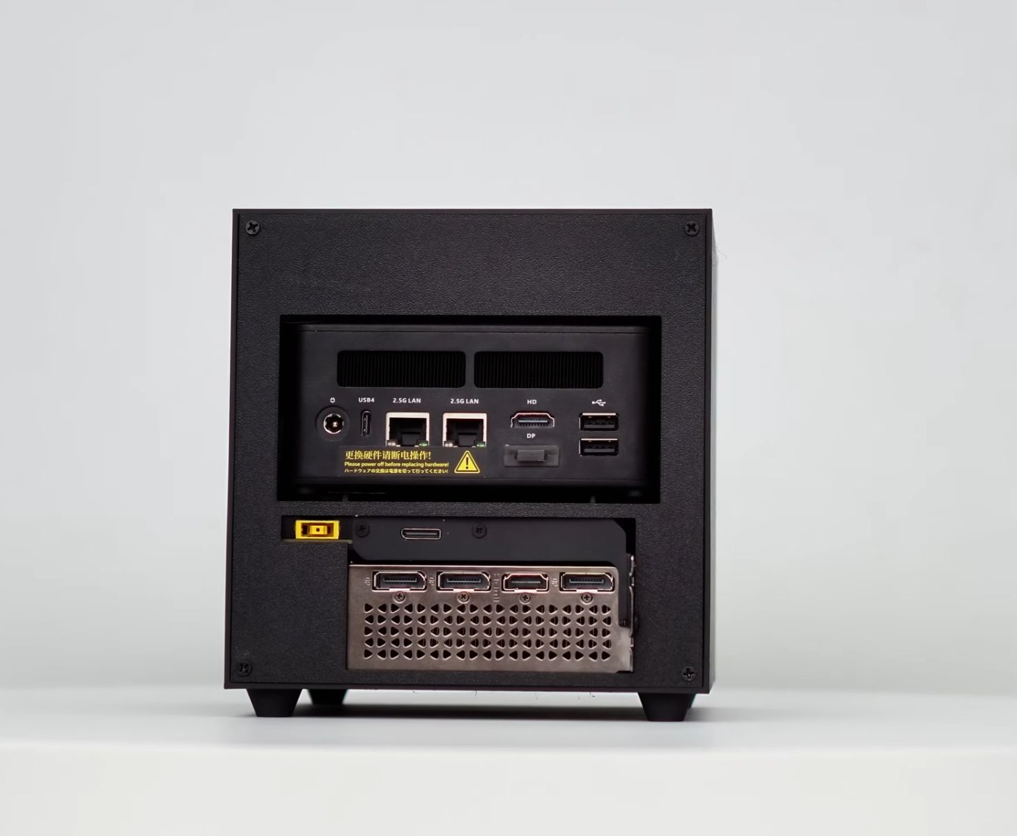 Az USB4 vagy Thunderbolt helyett a készítő az OCuLinket választotta, hogy nagyobb sávszélességet biztosítson a mini PC és a diszkrét grafikus kártya között. Maga a ház teljesen 3D nyomtatással készült, és mindössze két fő részre oszlik, így viszonylag egyszerű az összeszerelése.