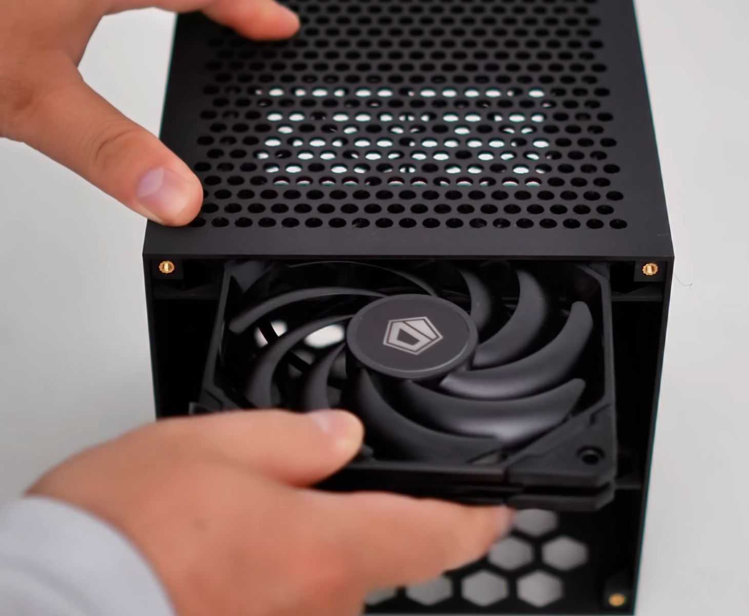 Az "ITG Cube" névre keresztelt modder projektje egy kocka alakú ház köré épül, amely egy Aoostar GEM12 MAX mini PC elhelyezésére szolgál, amelyet egy Aoostar GEM12 MAX mini PC működtet AMD Ryzen 7 8745HS egy Radeon 780M iGPU-val, amelyet jelenleg az Amazonon 289 dollárért árulnak, valamint egy dedikált hűtési megoldást, egy alacsony profilú, egyventilátoros HP RTX 4060-at, amely az eBay-en 239,95 dollárért kapható, és egy OCuLink-alapú eGPU dokkolót, mindezt kompakt 165 × 165 × 165 mm-es alapterületen.