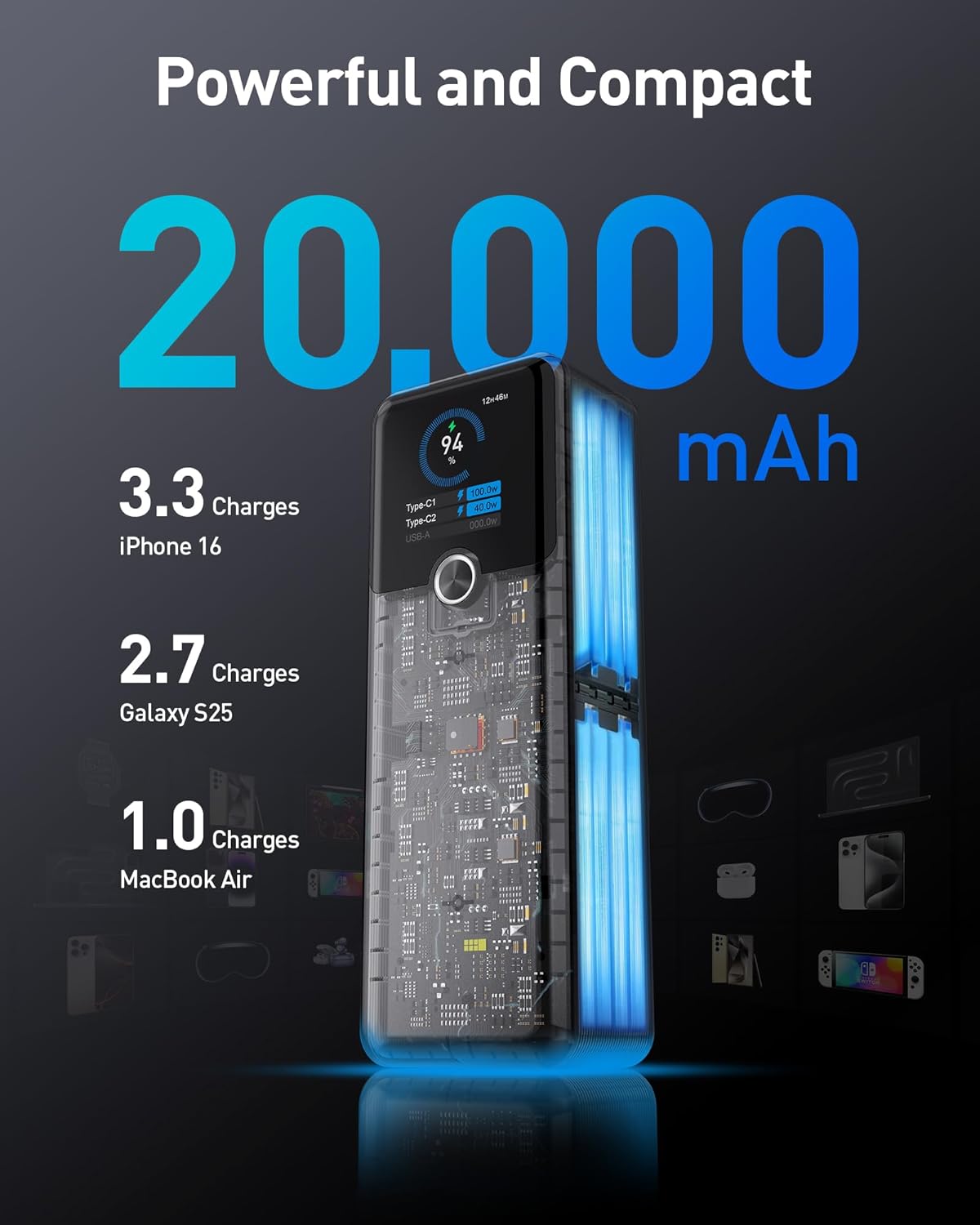 Független tesztek szerint a MacBook Neo akkumulátorának élettartama lényegesen gyengébb, mint a MacBook Air 13. Ha tehát a MacBook Neót keményen megerőlteted egy csomó alkalmazás egyidejű futtatásával, gyakran nyúlhatsz a töltőért. Itt jön a képbe egy hordozható power bank.