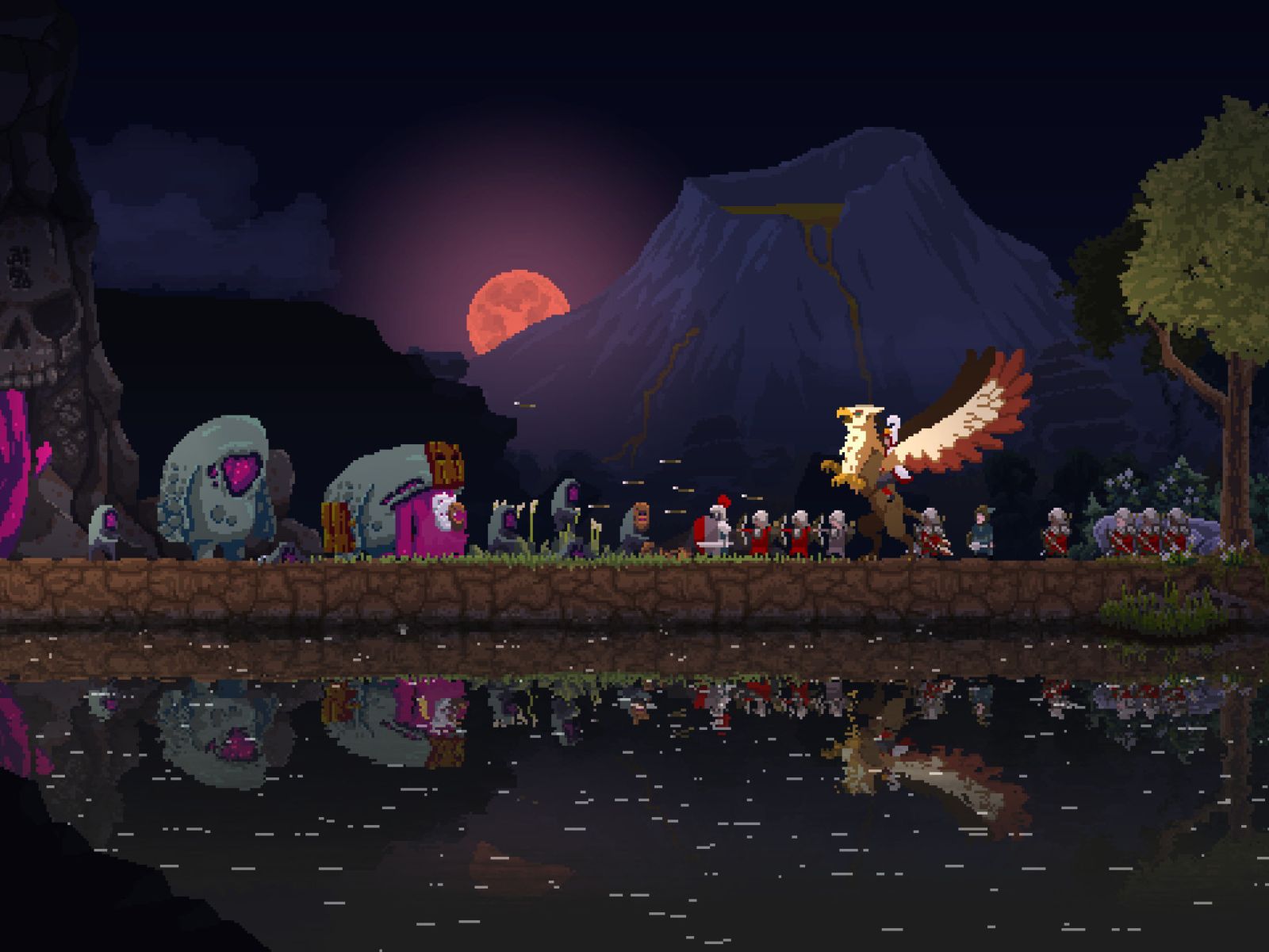 A Kingdom Two Crowns, egy stratégiai játék 2018. december 11-én jelent meg, nyersanyagok gyűjtésével és védelmi rendszerek kiépítésével kell visszaszerezned elesett királyságodat. De ezek a földek titokzatosak, és sok lény támad rád, és megpróbálja ellopni a kincseidet.