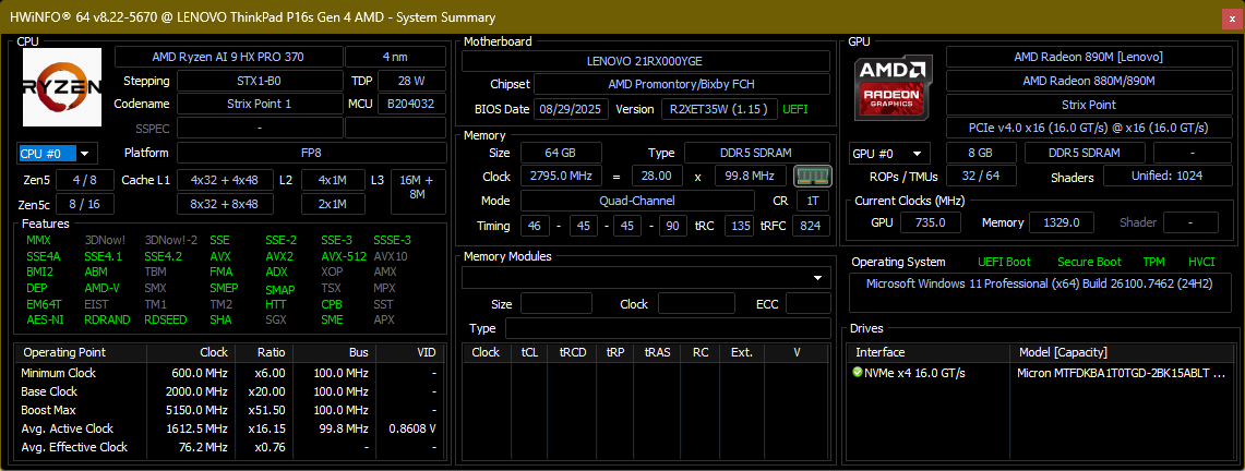 Specifikációk: Ryzen AI 9 Pro HX 370 egy 16 hüvelykes ThinkPadben