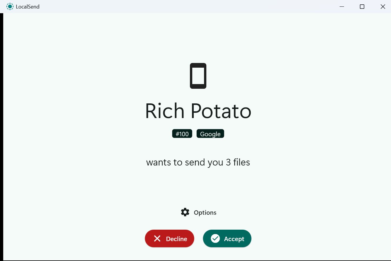 Ezért tovább kerestem, és végül egy másik nyílt forráskódú eszközre bukkantam: LocalSend (Website). A Pairdroppal ellentétben nem tudom a böngészőből működtetni, de a Github page gyakorlatilag minden platformra kínál alkalmazást - Windows, macOS, Linux, Android, és iOS. És ahelyett, hogy a Android verziót telepítettem volna a Play Store-ból, az F-Droidról kaparintottam meg, ami számomra sokkal adatvédelmi barátságosabbnak tűnik.