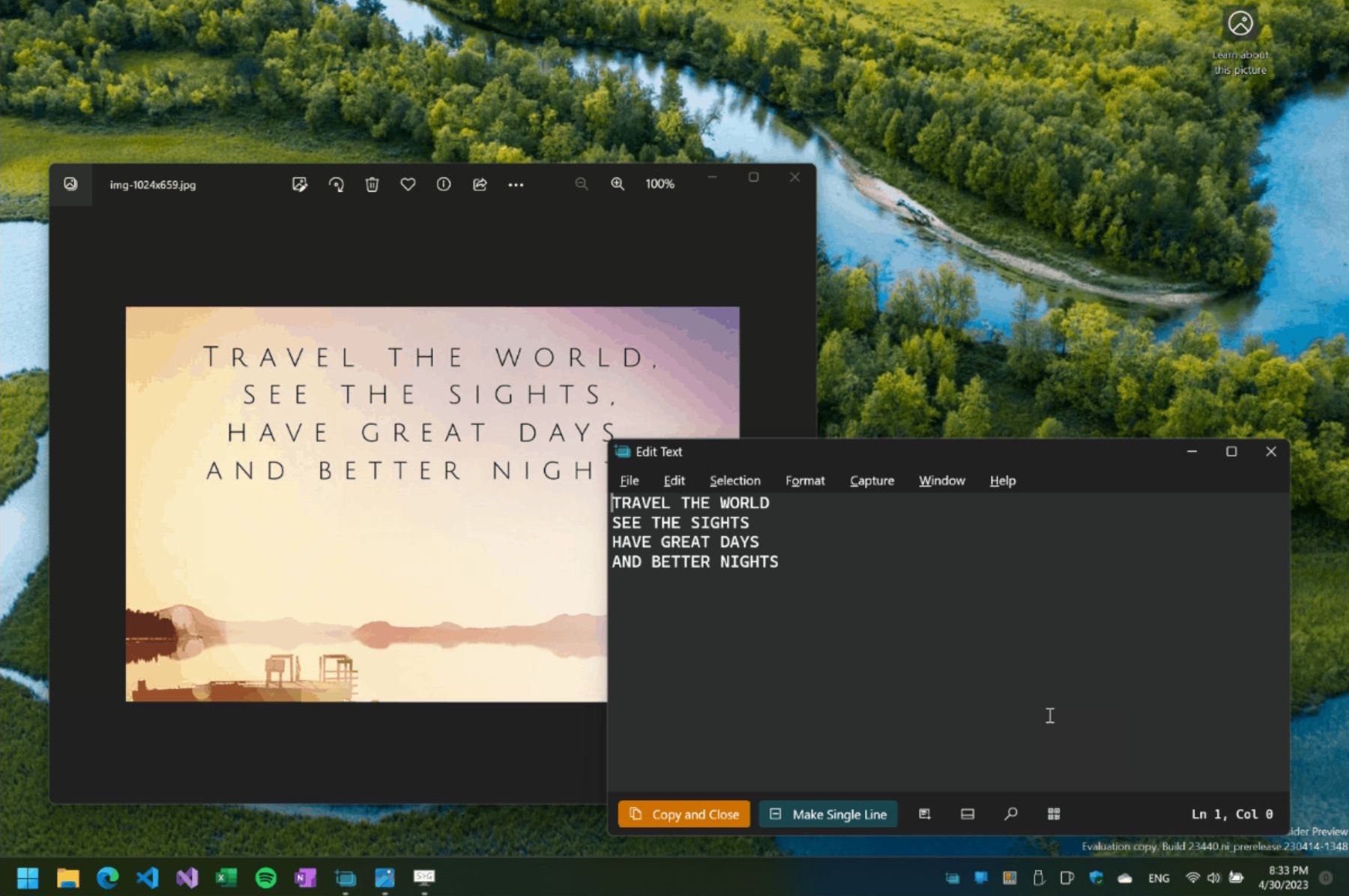 Annak ellenére, hogy az alkalmazás mindössze 74 MB-os, többféleképpen is rögzíthet szöveget. Beolvashatja a teljes képernyőt, keretet húzhat egy kisebb terület köré, vagy akár közvetlenül egy szóra is kattinthat. Ha szeretné, az eszköz automatikusan megnyitja a Notepadot a kinyert szöveggel, amely készen áll a szerkesztésre.