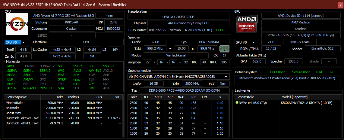 | Lenovo ThinkPad L14 Gen 6 21SE0022GE Ryzen AI 7 PRO 350, Radeon 860M | Lenovo ThinkPad L14 G5 21L50014GE R5 7535U, Radeon 660M | Asus ExpertBook PM3406 Ryzen AI 7 350, Radeon 860M | Dell Pro 14 Plus PB14255 GH77W Ryzen AI 7 PRO 350, Radeon 860M | HP EliteBook 6 G1q 14 SD X Plus X1P-42-100, Adreno X1-45 1.7 TFLOPS | Lenovo ThinkPad E14 Gen 7 21U2002QGE Core Ultra 5 228V, Arc 130V | |