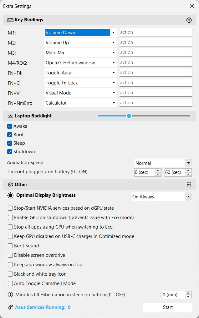- A G-Helper lehetővé teszi a felhasználók számára, hogy szabadon hozzárendeljék a sok Asus laptopon található négy extra hardvergombot. Ez végre lehetővé teszi a megfelelő Print Screen gomb hozzárendelését, amely megmagyarázhatatlanul hiányzik sok játékbillentyűzetről.