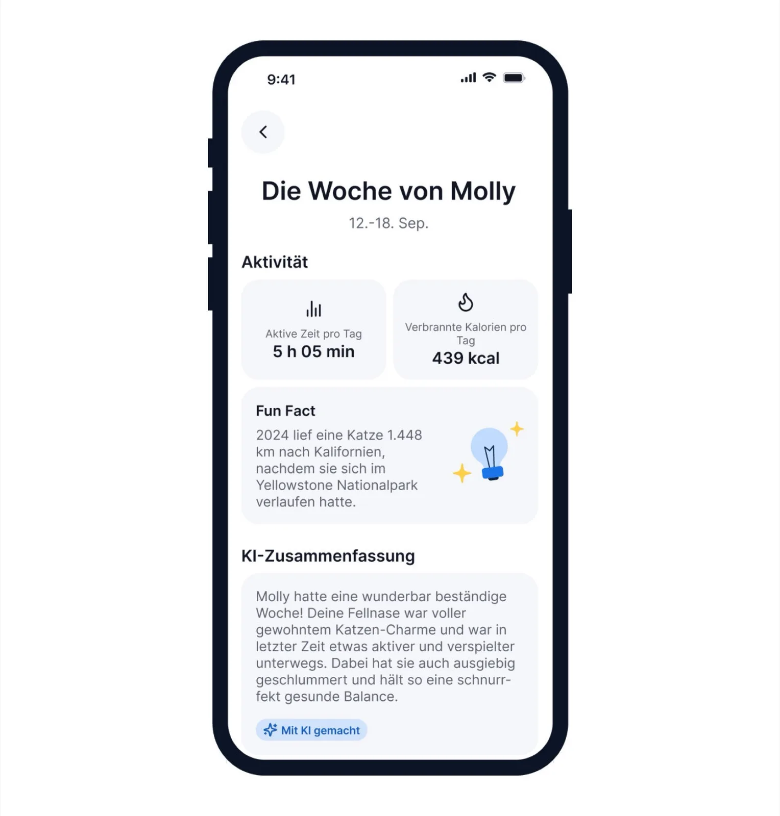 A trackerek az egészség és a fitnesz állapotának nyomon követését is kínálják egy okosóra stílusában. A pulzusszámot és a légzésszámot, valamint az elégetett kalóriákat, az aktívan töltött időt és az alvást is nyomon követik. A biztonsági zár biztosítja, hogy a nyakörv letéphető legyen a háziállatról, ha elakadna. A Tractive Cat 6 Mini akkumulátorának élettartama akár hét nap, a Dog 6 XL a nagyobb akkumulátornak köszönhetően hat hét.