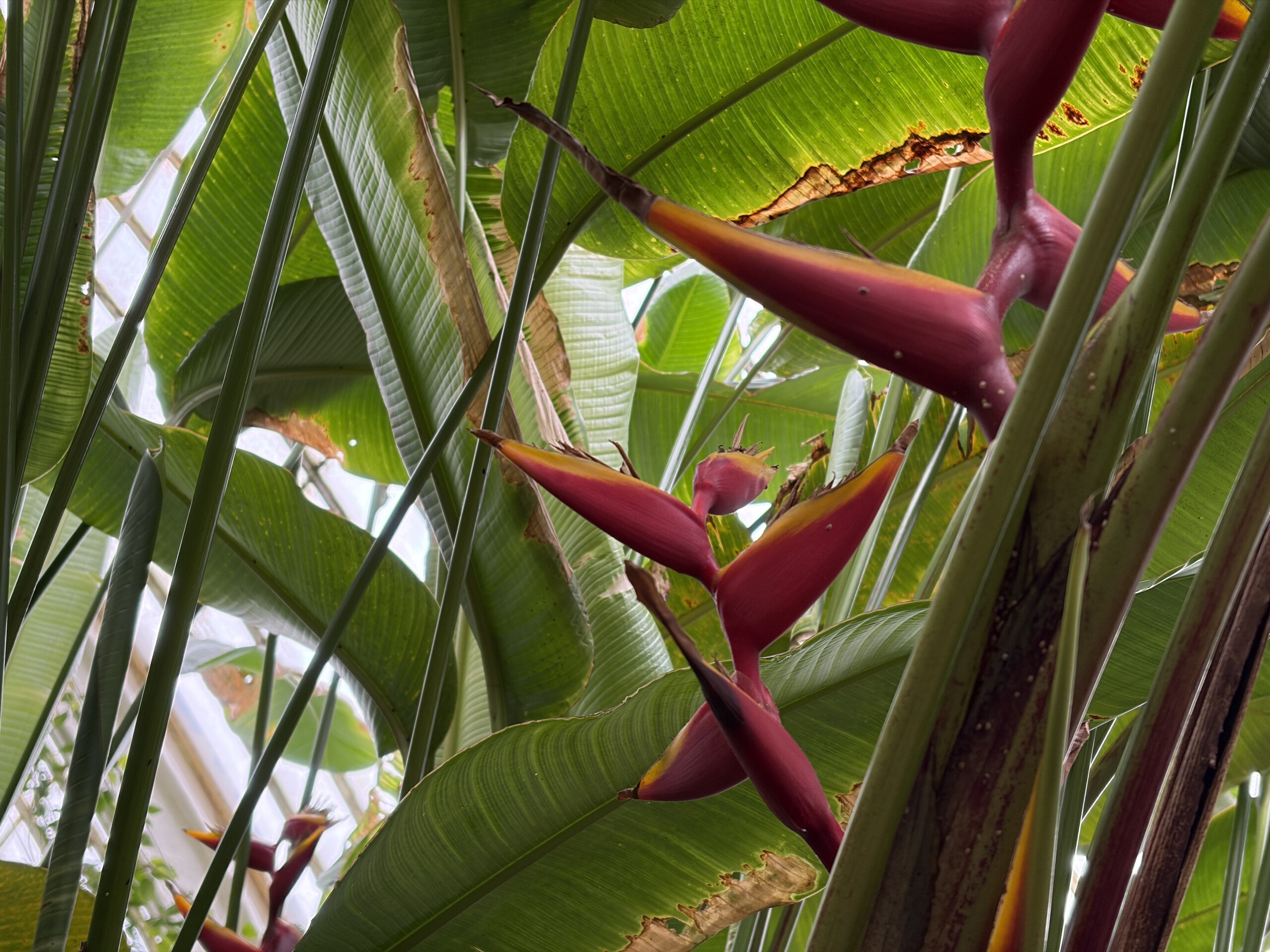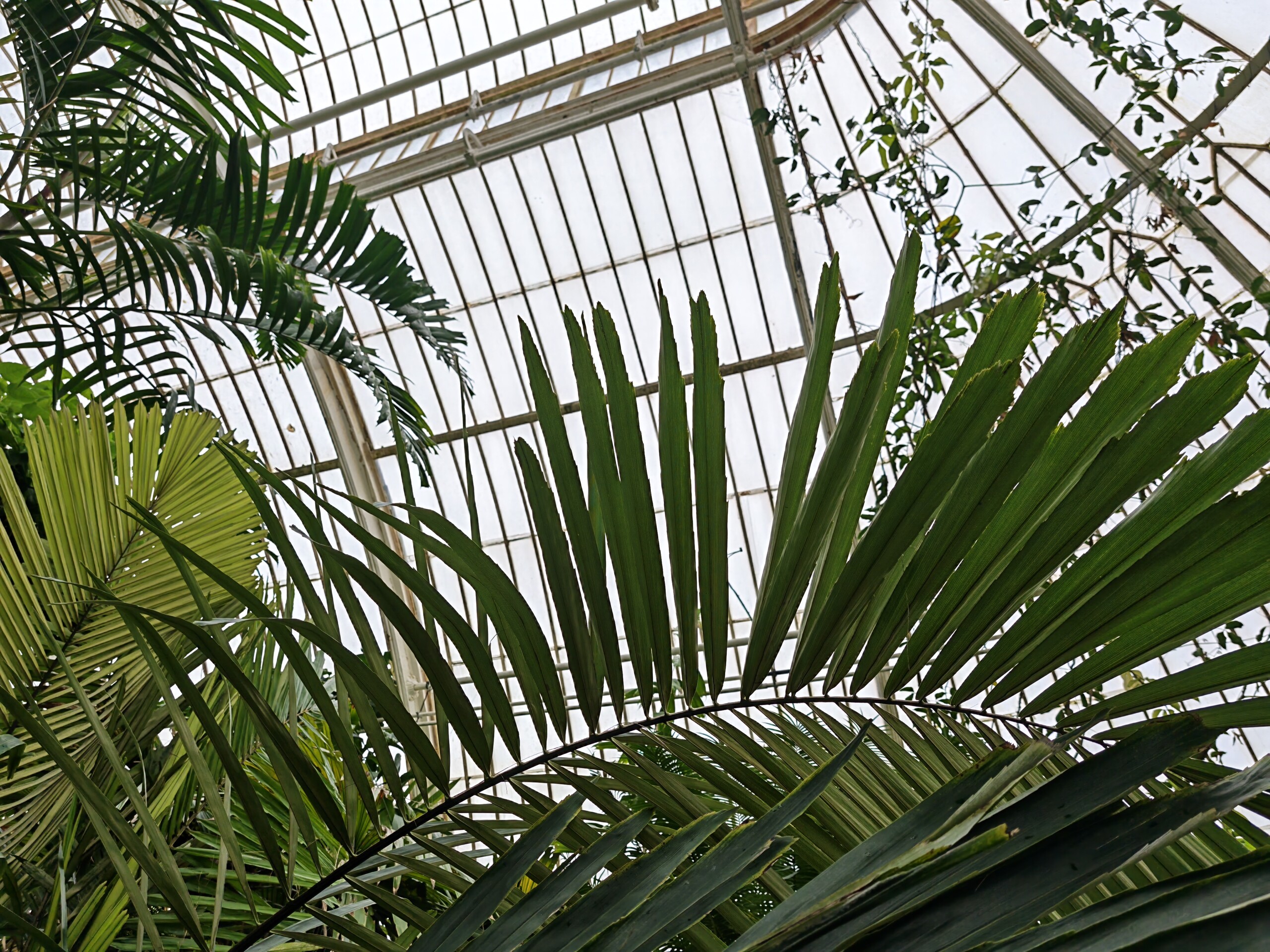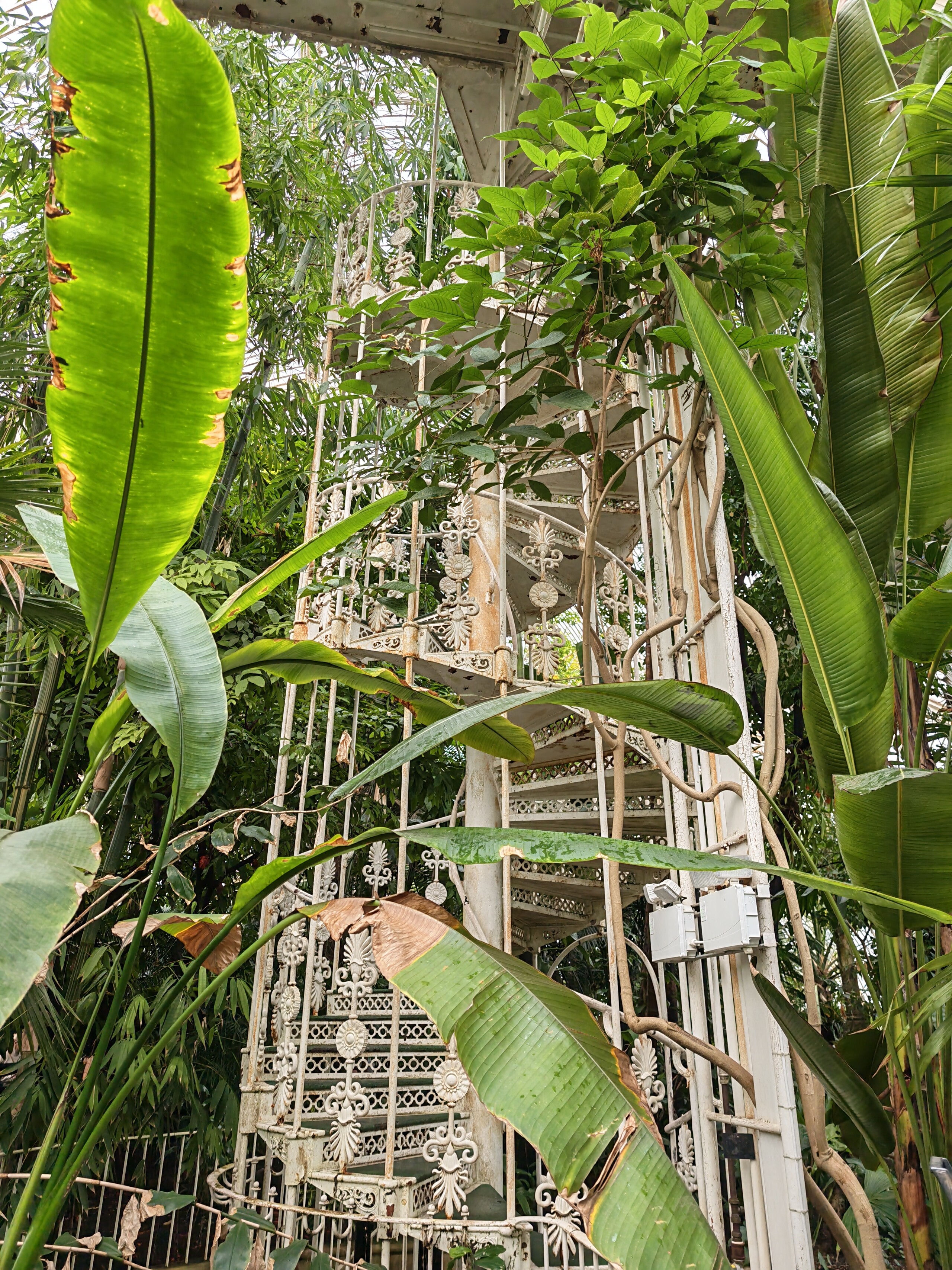 A pálmaházban vaslépcsők is vezetnek fel egy sétányra, ahonnan felülről is kilátás nyílik a buja trópusi növényvilágra. A Honor telefonról készült fotó itt is kontrasztgazdagabbnak tűnik, de a részletgazdagság és élesség tekintetében ismét az iPhone győz.