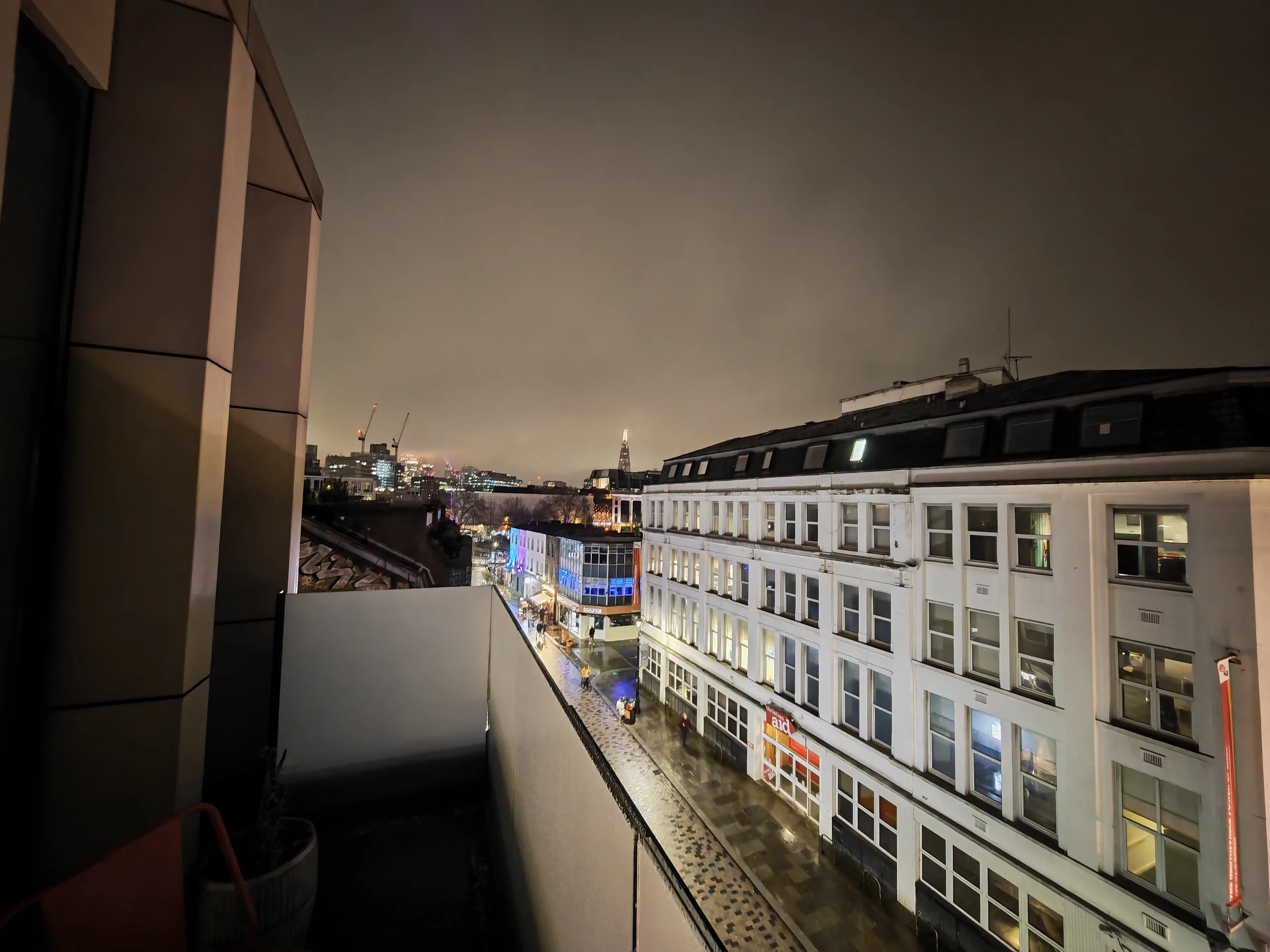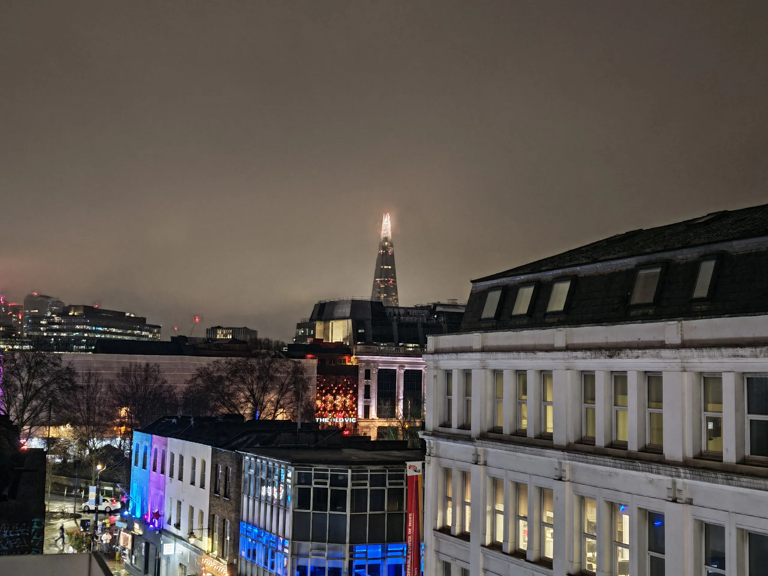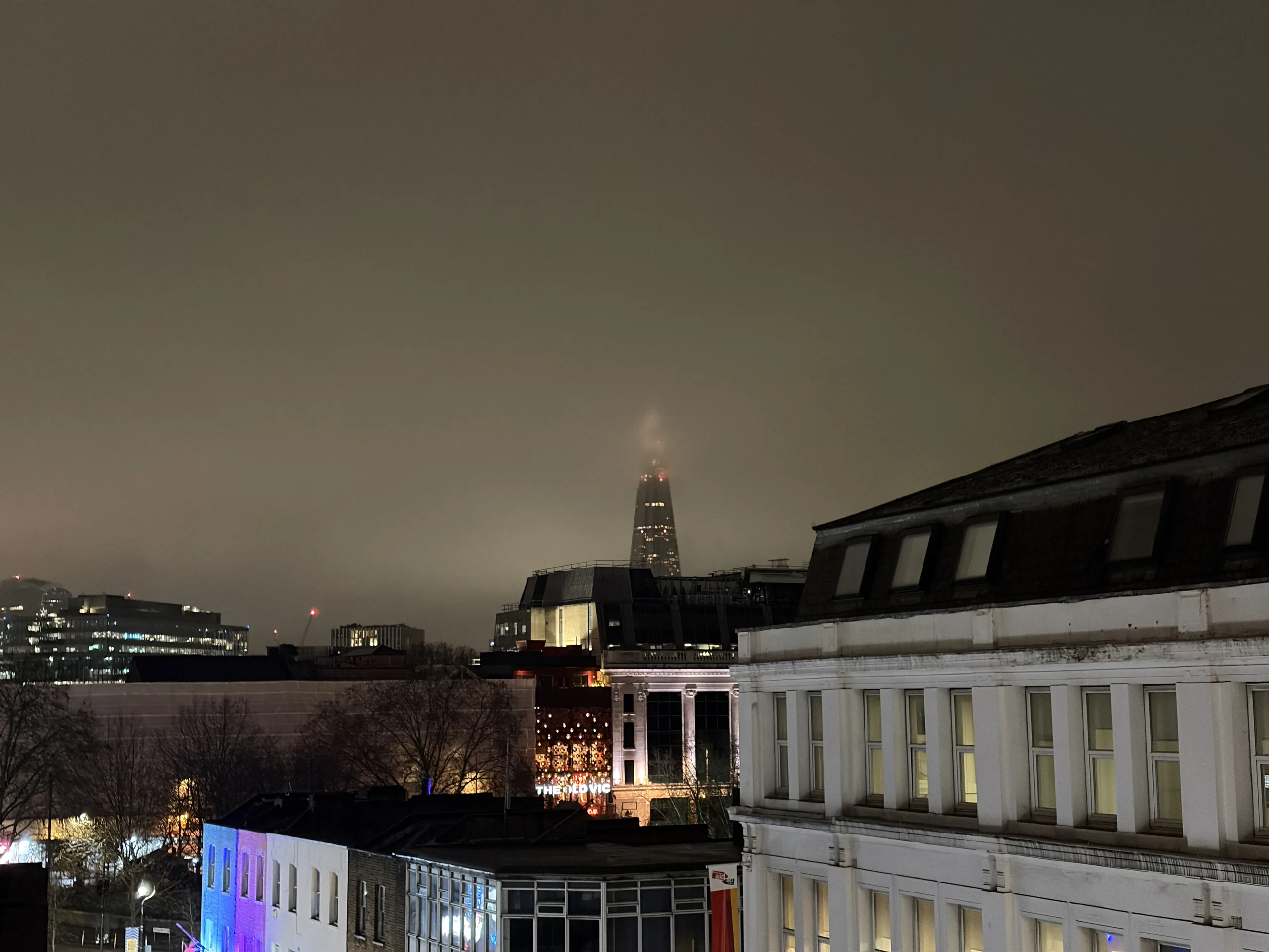 A távolban feltűnik a Shard, London egyik legszokatlanabb felhőkarcolója. Ezt használjuk arra, hogy összehasonlítsuk a két okostelefon zoomolási képességeit.