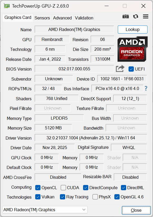 | Átlagos AMD Radeon 680M (7.41 - 9.53, n=4) | |