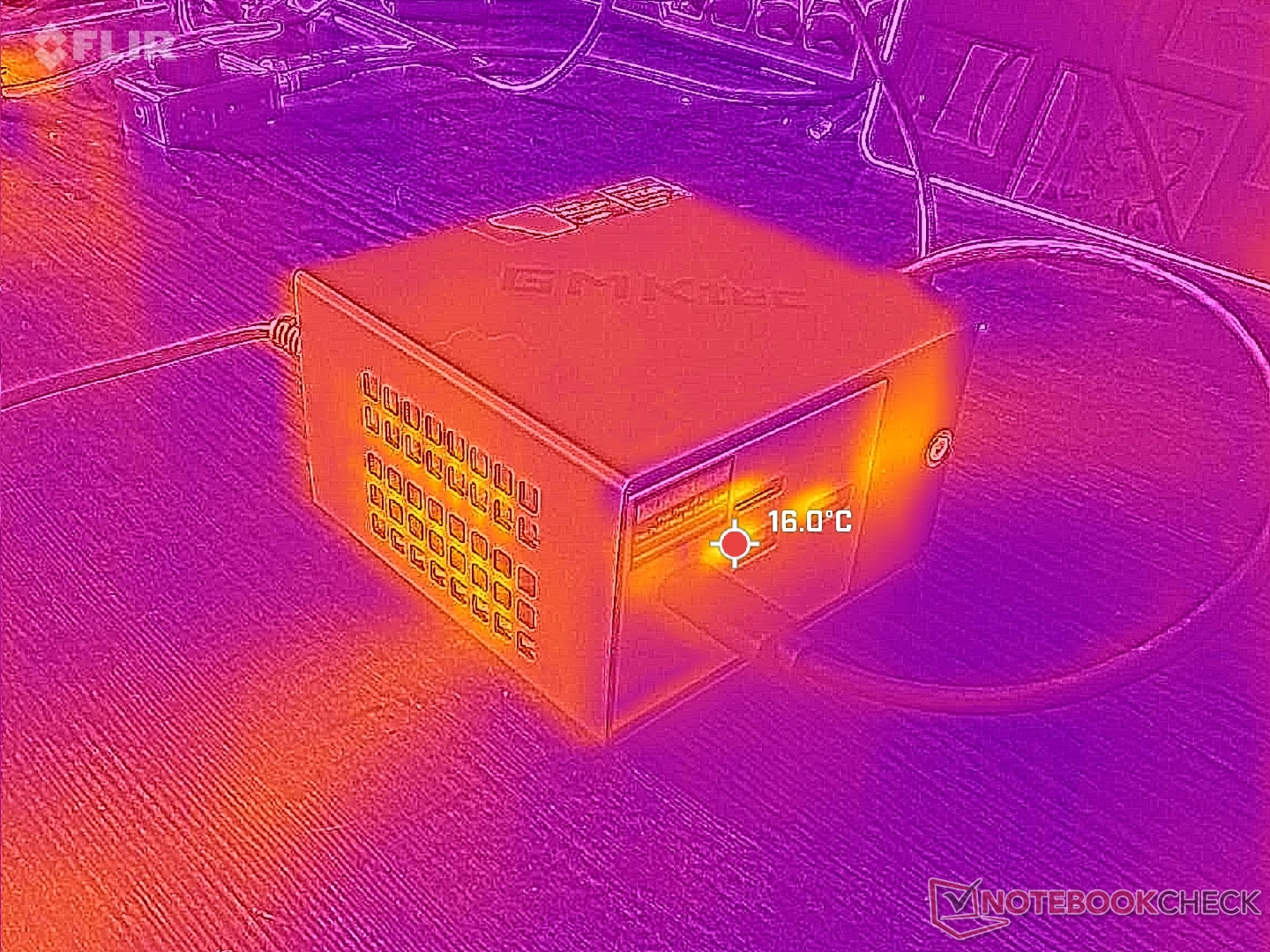 A friss levegő a készülék felső széle mentén lévő réseken keresztül áramlik be, majd a készülék két oldalán távozik. Ezzel szemben a legtöbb más mini PC-k esetében a hulladékhő hátul távozik. A NucBox K16 oldalra helyezése ezért eltakarná a kipufogórácsokat, és potenciálisan befolyásolná a hőmérsékletet és a teljesítményt.