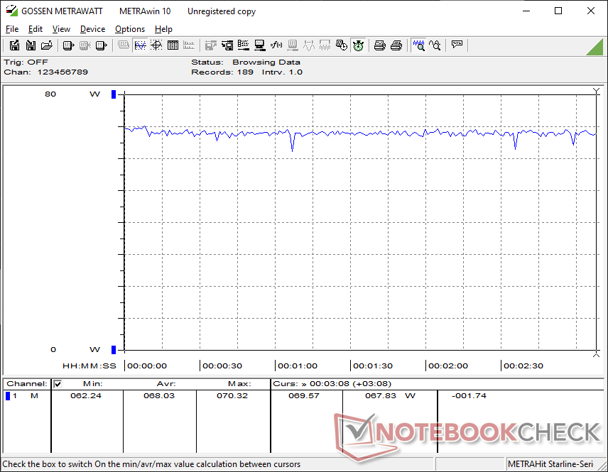 | Cyberpunk 2077 ultra external monitor * (Watt) | 68 | 31.6 54% | 80.1 -18% | 67.4 1% | 63.9 6% | 41.1 40% |
