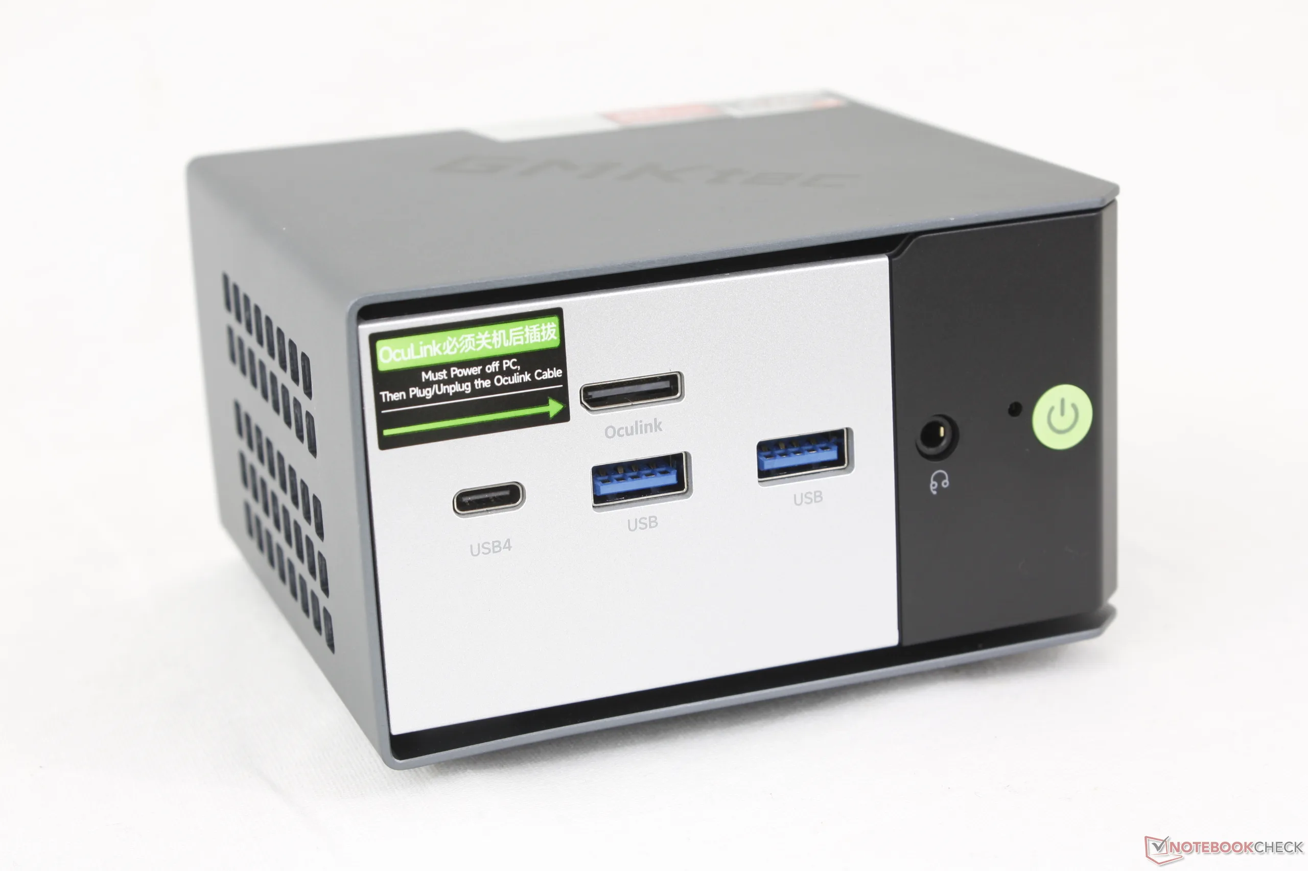 Az alváz megegyezik a tavalyi EVO-X1-gyel, amely továbbra is az egyik legkisebb mini PC a GMKtec kínálatában. A csatlakozási lehetőségek nem változtak, beleértve a mindent eldöntő Oculink portot, amely segít megkülönböztetni a modellt a legtöbb konkurens mini PC-től.