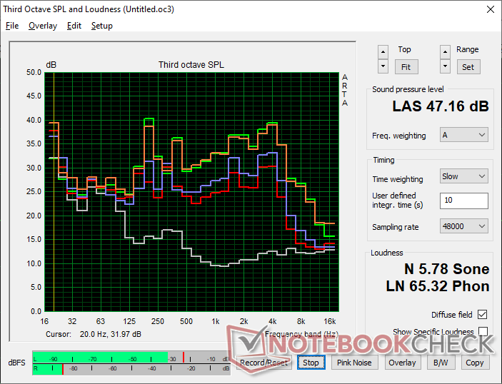 A ventilátorok sajnos elég gyakran pulzálnak, akár 38 dB(A) értékig a 24 dB(A) csendes háttérből, még akkor is, ha kiegyensúlyozott üzemmódba van állítva, vagy ha olyan igénytelen terhelések futnak, mint a böngészők vagy a videó.