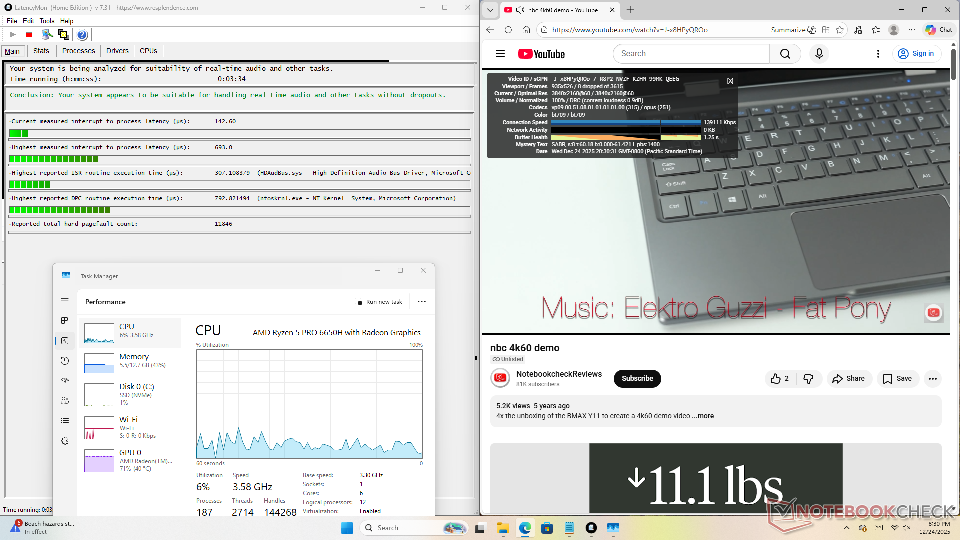 Annak ellenére, hogy a régebbi Zen 3+ platformon fut, a Ryzen 5 Pro 6650H még mindig képes fej-fej mellett állni az újabb Core Ultra 7 258V amikor többszálú terhelésről van szó. Ennek ellenére a legtöbb más, egymagú, grafikus vagy mesterséges intelligenciát érintő benchmarkban lemarad.