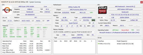 | GMK NucBox M8 AMD Ryzen 5 PRO 6650H ⎘ AMD Radeon 660M ⎘ 16 GB Memória, 512 GB SSD | Amazon: | 494 g | 63 mm | x | |