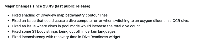 Most, a 25.14-es rendszerszoftverrel a Garmin több olyan hibával is foglalkozik, amelyet a Descent Mk3 és Descent Mk3i(jelenleg 1399,99 dollár az Amazonon) felhasználói tapasztaltak. Először is, a vállalat megoldotta a DiveView térképen a bathymetria kontúrvonalainak árnyékolásával kapcsolatos problémát. Javítottak egy búvárkomputer hibát, amely akkor lépett fel, amikor a felhasználók CCR merülés közben oxigénhígítóra váltottak.