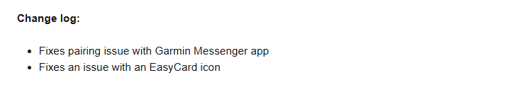 A 17.02-es béta verzió változásnaplója megegyezik a 17.01-es verzióéval. A Garmin Messenger alkalmazás párosítással kapcsolatos problémájának megoldását sorolja fel, és azt is jelzi, hogy az EasyCard ikonhoz kapcsolódó hibát is kijavították. Ezen kiadási megjegyzések alapján nem világos, hogy ez a béta kiadás miben különbözik a stabil elődjétől.