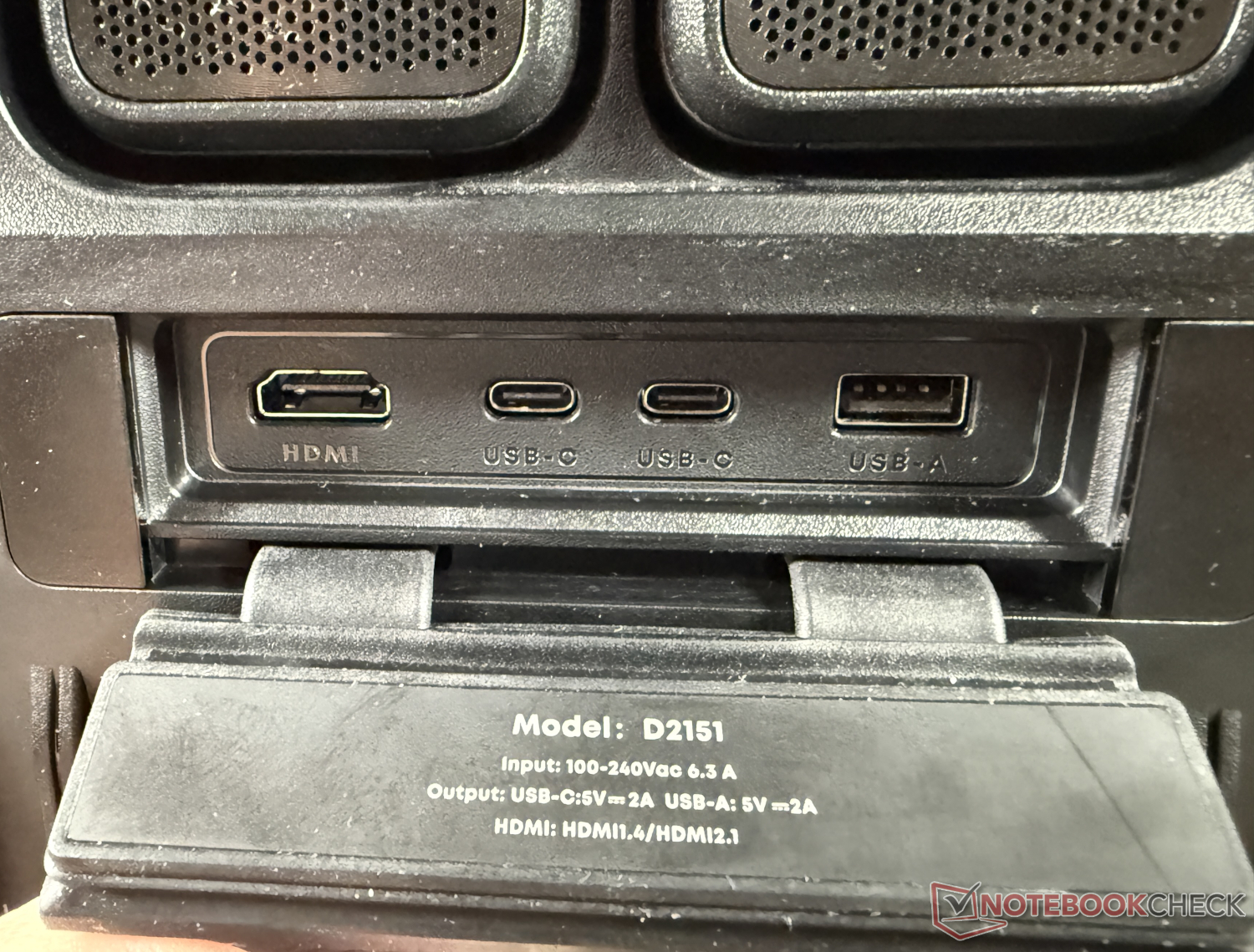 A készülék hátoldalán egy gumírozott borítás alatt számos csatlakozó található. Van egy HDMI 2.1 port, két USB-C port és egy USB-A port (mindegyik 10 W-os). Hangkimenet (mint a Nebula X1 esetében) vagy LAN-port nincs. A vezeték nélküli csatlakozást a kétsávos Wi-Fi 5 és a Bluetooth biztosítja.