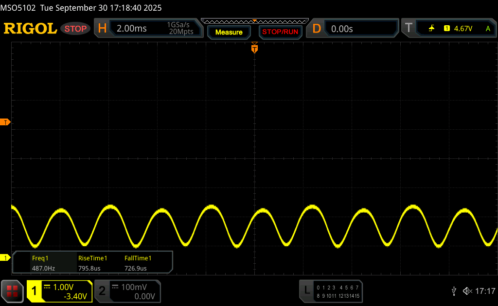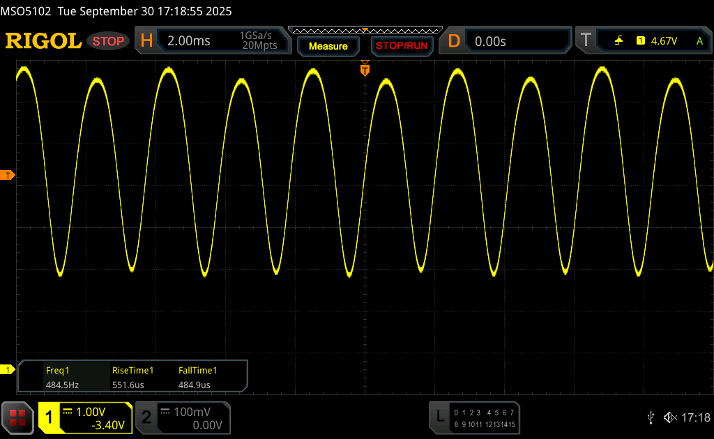 (+) | a csúcsok lineárisak (2% delta az előző frekvenciához képest)