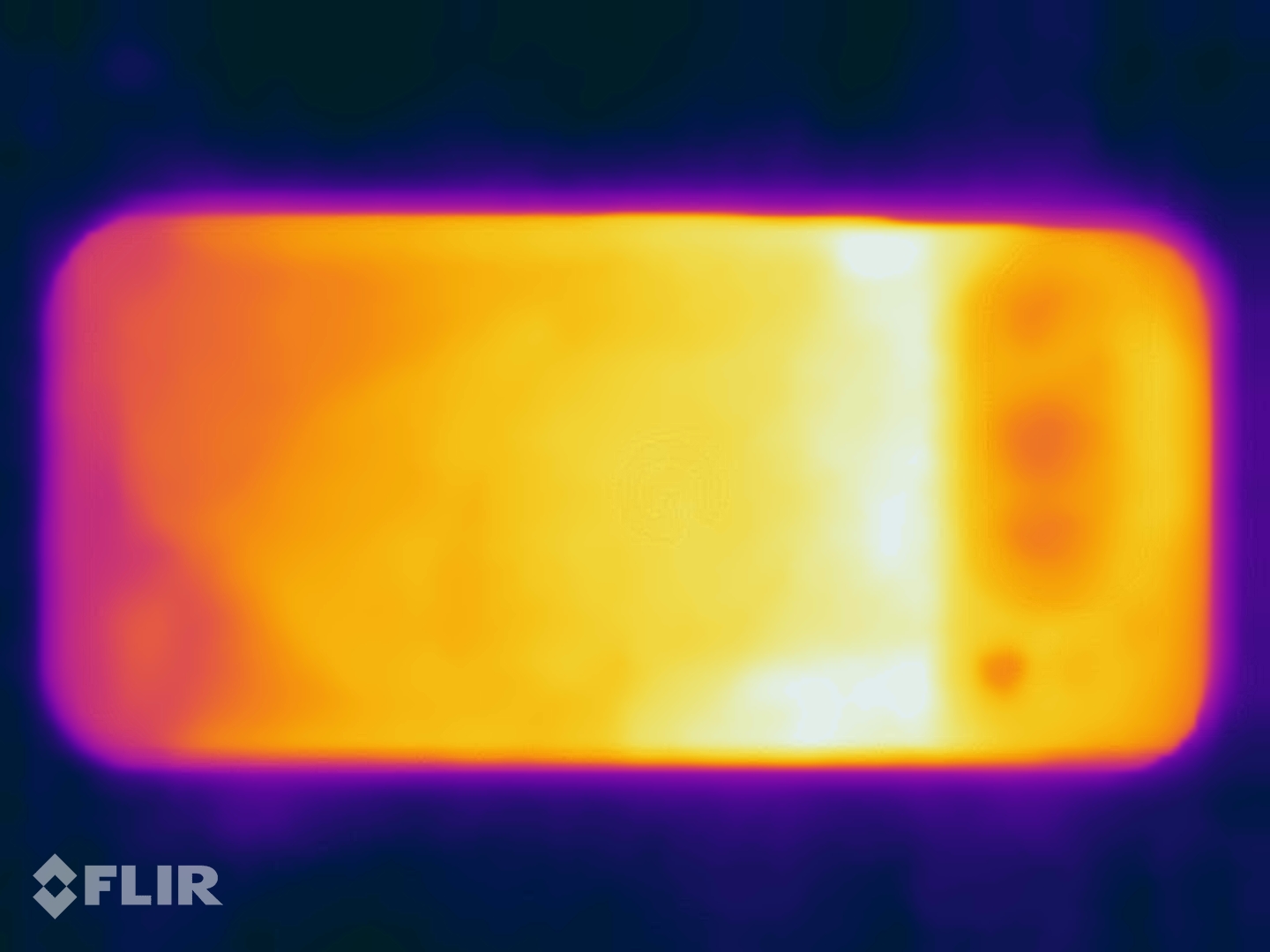 (±) A felső oldalon a maximális hőmérséklet 41.2 °C / 106 F, összehasonlítva a 35.2 °C / 95 F átlagával , 21.9 és 247 °C között a Smartphone osztálynál.