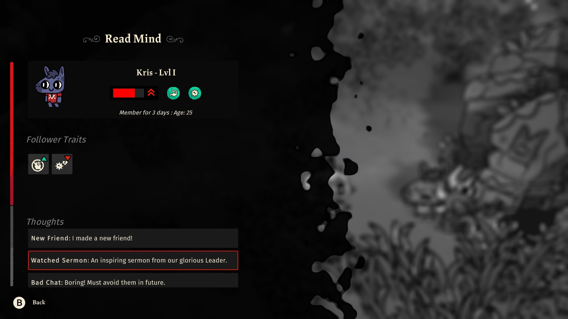 Építményeket építesz, nyersanyagokat gyűjtesz, prédikációkat tartasz és sötét rituálékat végzel, hogy híveid hűségesek és hitük erős maradjon. Ugyanakkor véletlenszerűen generált területekre merészkedsz, ellenségekkel harcolsz, legyőzöd a rivális szektavezéreket és magadba szívod erejüket. A cél négy titokzatos régió feltárása, a nem hívők megtérítése és isteni bárányistenként való felemelkedés. Az élmény középpontjában a roguelike keresztes hadjáratok állnak, procedurálisan generált dungeonokkal, folyamatosan változó fegyverekkel és ideiglenes fejlesztésekkel, amelyek minden egyes futást egyedivé tesznek. Mindezek mellett az állandó fejlesztések biztosítják a folyamatos fejlődés érzését.