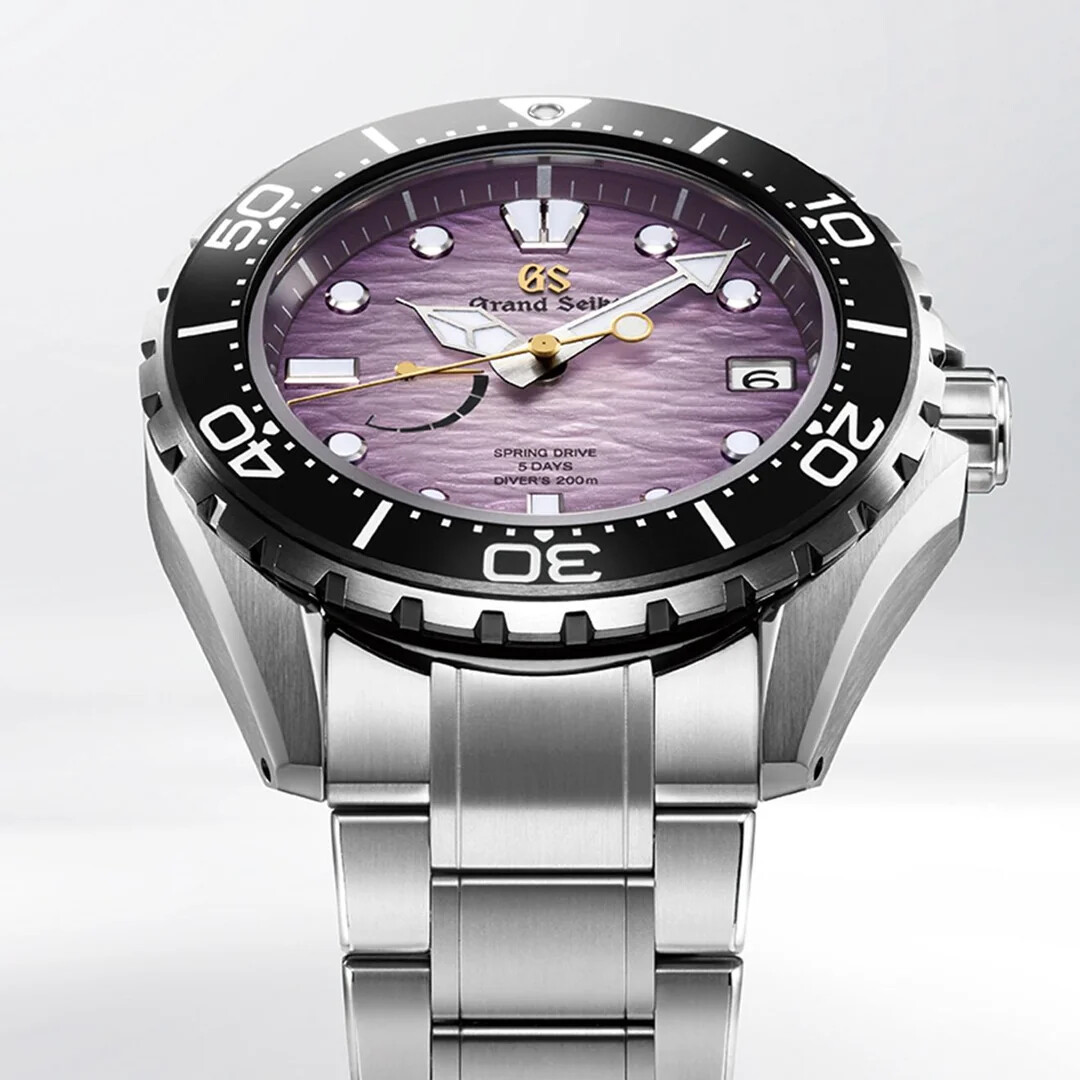 Következik az SLGA037, egy másik Spring Drive 5 Days óra 9RA5 kaliberrel. Ennek az időmérőnek lila színű, hullámos textúrájú számlapja van, amely a Csendes-óceánt utánozza szürkületkor. Fekete forgó lünetta és egy nagyobb, 43,8 x 13,8 x 51,5 mm (~ 1,72 x 0,54 x 2,03 hüvelyk) méretű titánium házzal rendelkezik, fém szíjjal. Ebből az órából 60 darab van Japánban.