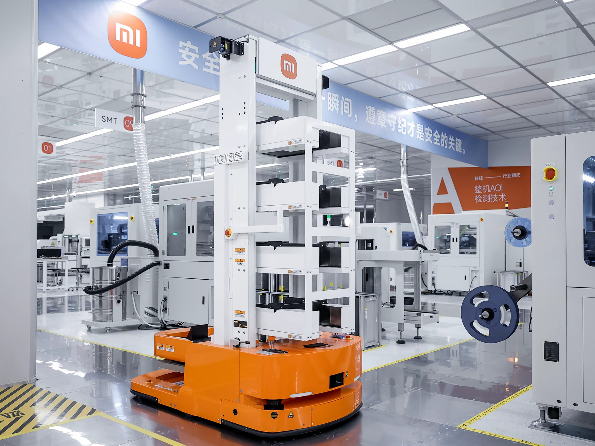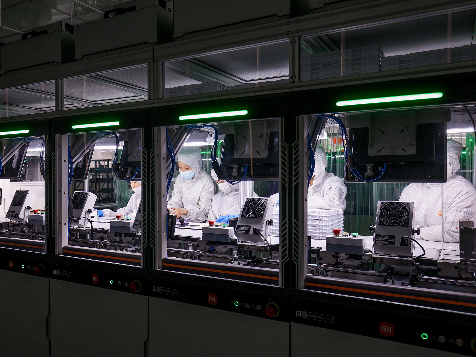 A Xiaomi által a gyárlátogatásra megnyitott gyártósor mintegy 100 méter hosszú, és az áramköri lapok tesztelésétől és előfeldolgozásától a végső ellenőrzésig minden lépést lefed. A Mi logót viselő mintegy 4000 gépet házon belül fejlesztették ki. Az automatizáltsági fok 81 százalékos, a szoftvereket pedig teljes egészében a Xiaomi fejlesztette ki.