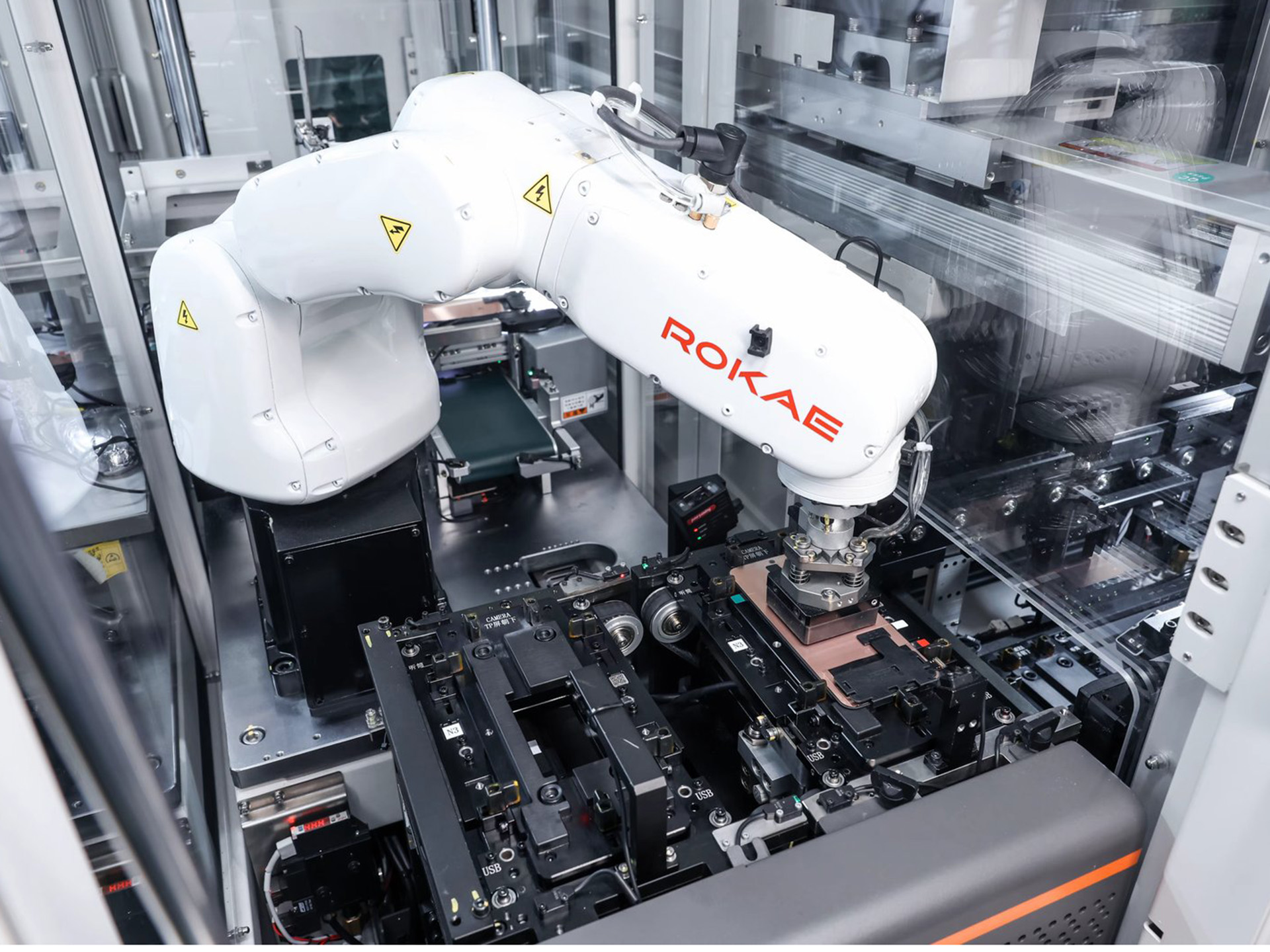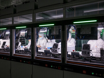 A régi és az új vizsgálati technológia összehasonlítása különösen lenyűgöző: a robotkarok korábban korlátozott kapacitással rendelkeztek. Ma már olyan fiókos rendszereket használnak, amelyek egyszerre 40 áramköri lapot képesek tesztelni - ez 60 százalékos hatékonyságnövekedést jelent. Ezt követi az összeszerelés, ahol az ember elsősorban ott avatkozik be, ahol a pontosság pótolhatatlan, például amikor mikroszkóp alatt, egy speciális tisztaszobában kamerák lencséit tisztítják.