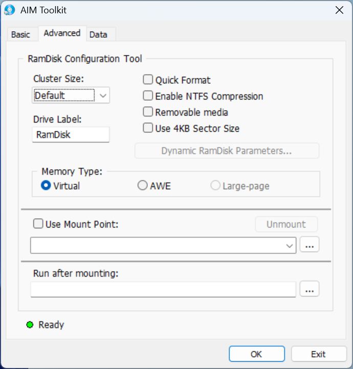Egy ilyen teszthez olyan meghajtóra van szükség, amely folyamatosan gyorsabb, mint bármelyik SSD, amelyet összehasonlítunk. Ez kiküszöböli a szűk keresztmetszetet a forrás- vagy a céloldalon. És itt jön a képbe az AIM Toolkit nyílt forráskódú eszköz. Egy népszerű alternatíva az ImDisk. Mindkét eszköz ugyanazt a két alapvető funkciót kínálja: virtuális meghajtókat tudnak létrehozni a RAM-ban, és képfájlokat tudnak virtuális meghajtóként csatlakoztatni.
