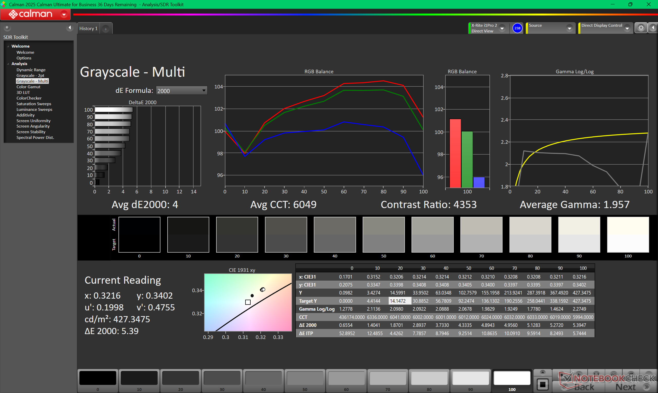 ΔE Greyscale Calman: 4 | ∀{0.09-98 Ø5}
