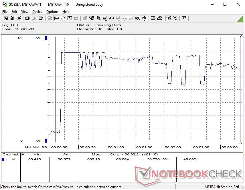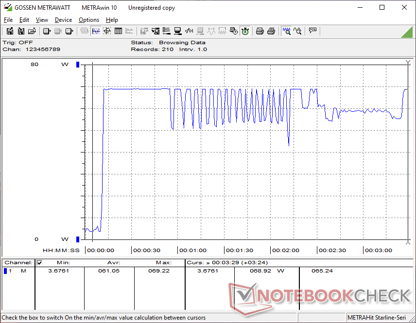 A kis méretű (~8,9 x 5 x 2,8 cm) 65 W-os USB-C hálózati adapterrel 69 W-os maximális fogyasztást tudunk rögzíteni.
