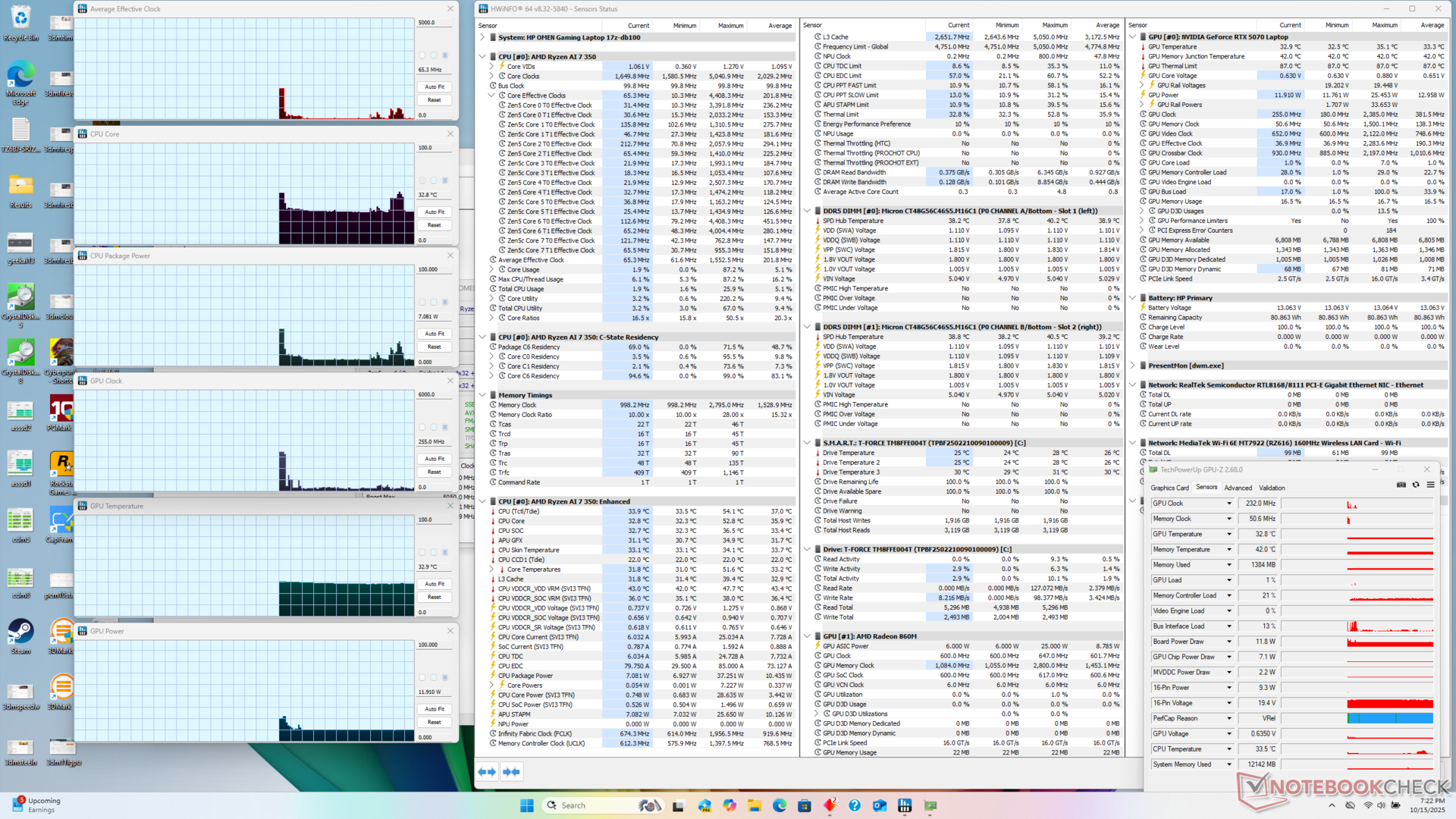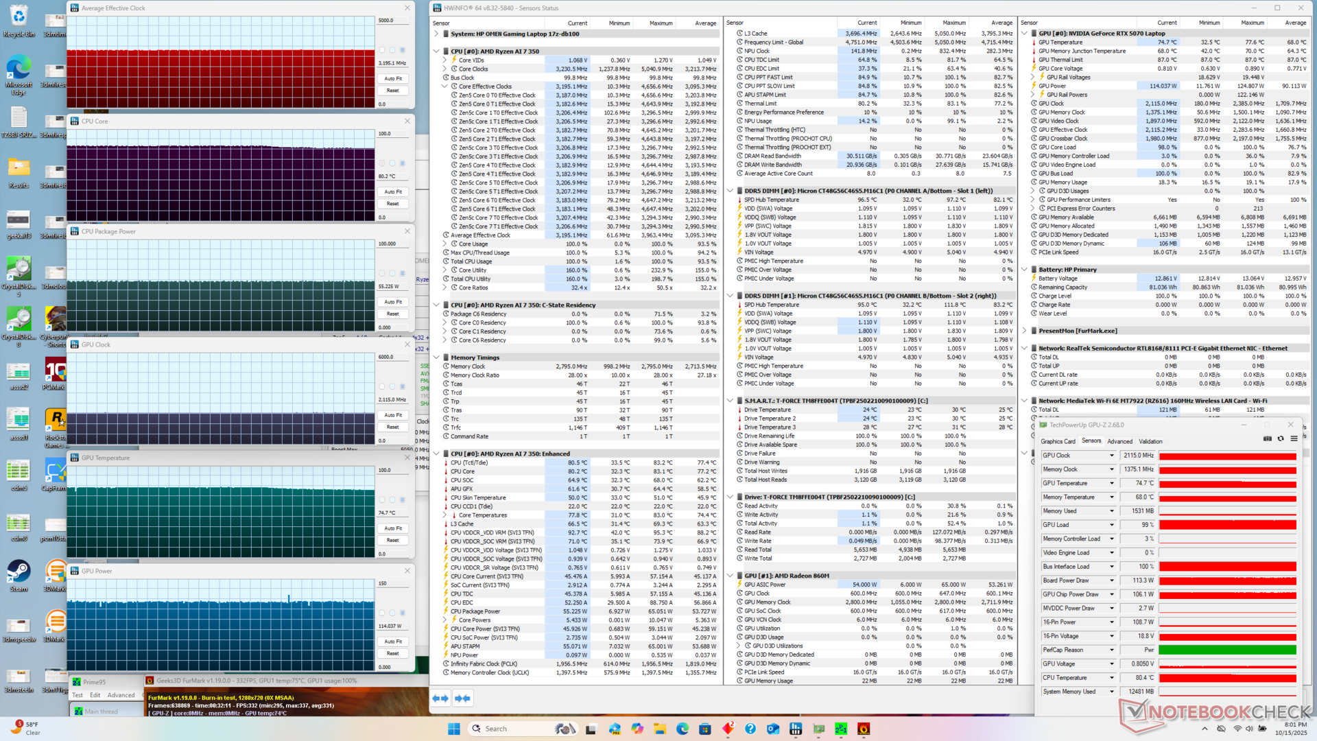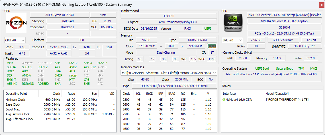 | HP Omen 17z-db100 AMD Ryzen AI 7 350 ⎘ NVIDIA GeForce RTX 5070 Laptop ⎘ 96 GB Memória | Amazon: $1,989.00 List Price: 1550 USD | 2.9 kg | 30.1 mm | 17.30" 2560x1440 170 PPI IPS | |