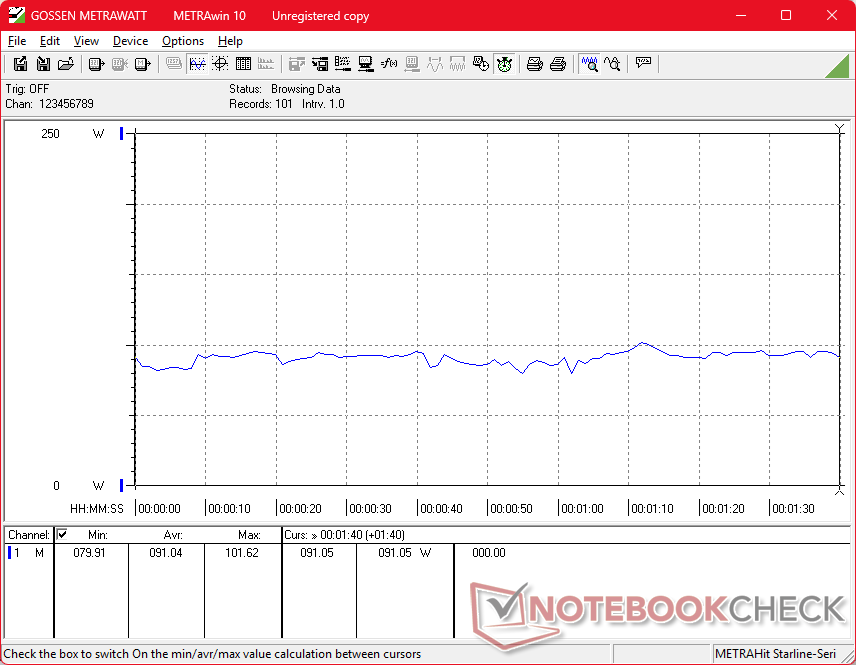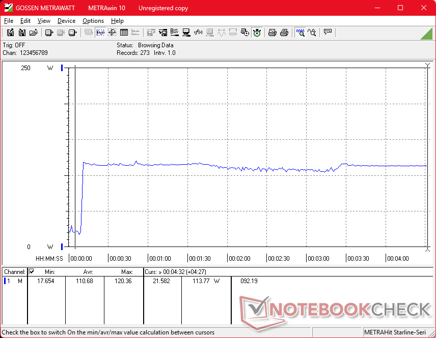 A közepes méretű (~18 x 8,5 x 2,5 cm) 230 W-os hálózati adapterrel 228 W-os maximális fogyasztást tudunk rögzíteni, amikor a CPU és a GPU 100 százalékos kihasználtságon van.