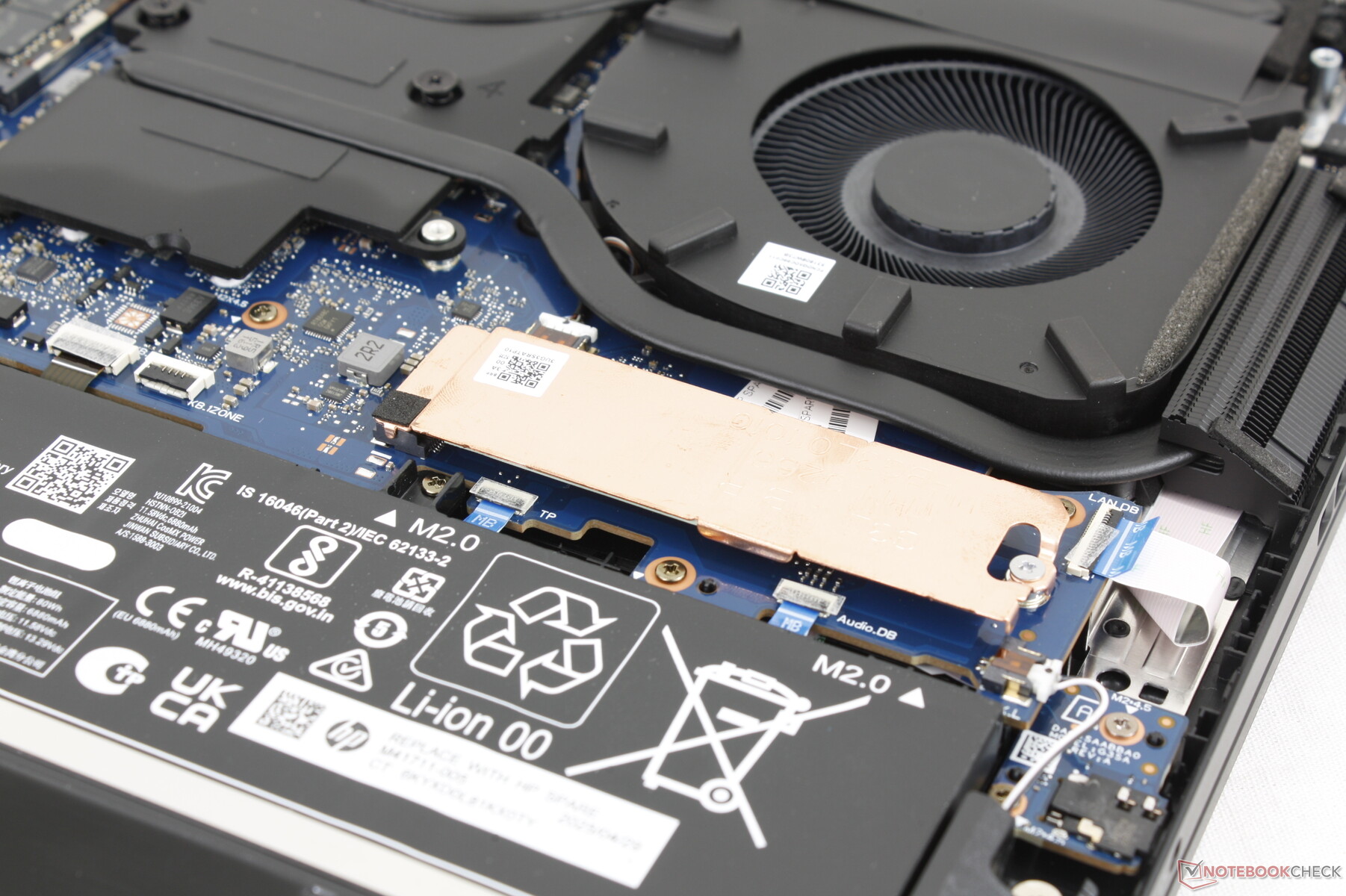 Az akkumulátor kapacitása egy 17 hüvelykes játékos laptophoz képest tisztességes, 83 Wh, ami iGPU módban valamivel több mint 8 óra valós WLAN üzemidőt jelent. Az olyan versenytársak, mint az Asus TUF Gaming A17 vagy a Acer Nitro 5 AN517 valamivel nagyobb akkumulátorral és valamivel hosszabb üzemidővel rendelkeznek ehhez képest.