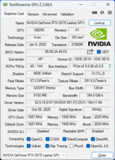 | Asus TUF Gaming A17 FA707XI-NS94 AMD Ryzen 9 7940HS ⎘ NVIDIA GeForce RTX 4070 Laptop GPU ⎘ 16 GB Memória, 1024 GB SSD | List Price: 1400 USD | 2.5 kg | 25.4 mm | 17.30" 1920x1080 127 PPI IPS | |