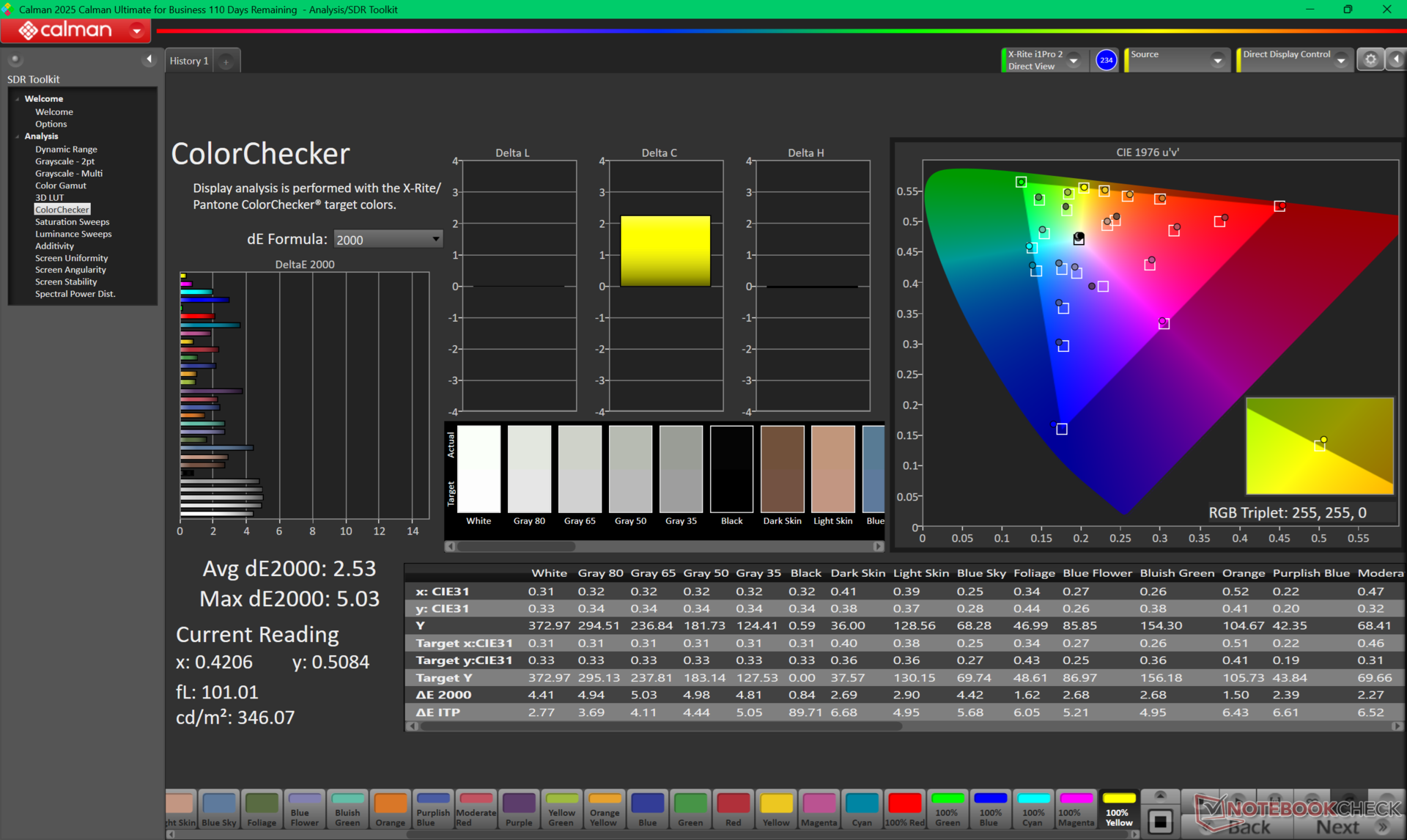 ΔE ColorChecker Calman: 2.53 | ∀{0.5-29.43 Ø4.79}