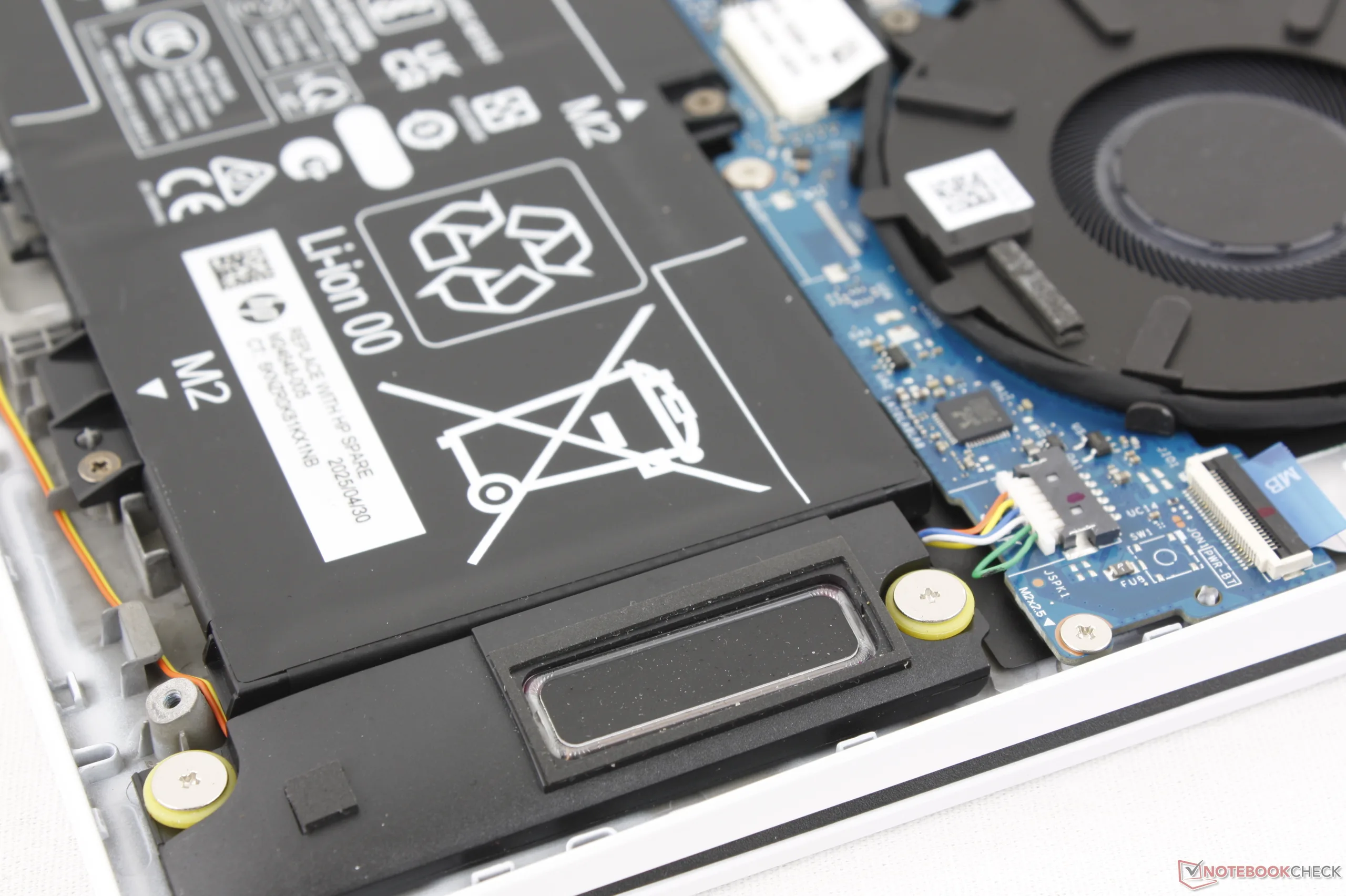 Az akkumulátor kapacitása még a 13 hüvelykes formátumhoz képest is kicsi, mindössze 43 Wh. Az MSI Summit E13 és Asus ZenBook S13például nagyobb, 70 Wh-s, illetve 63 Wh-s akkumulátorral rendelkezik. Az OmniBook Aero kisebb kapacitása egyértelműen súlycsökkentési célokat szolgál.