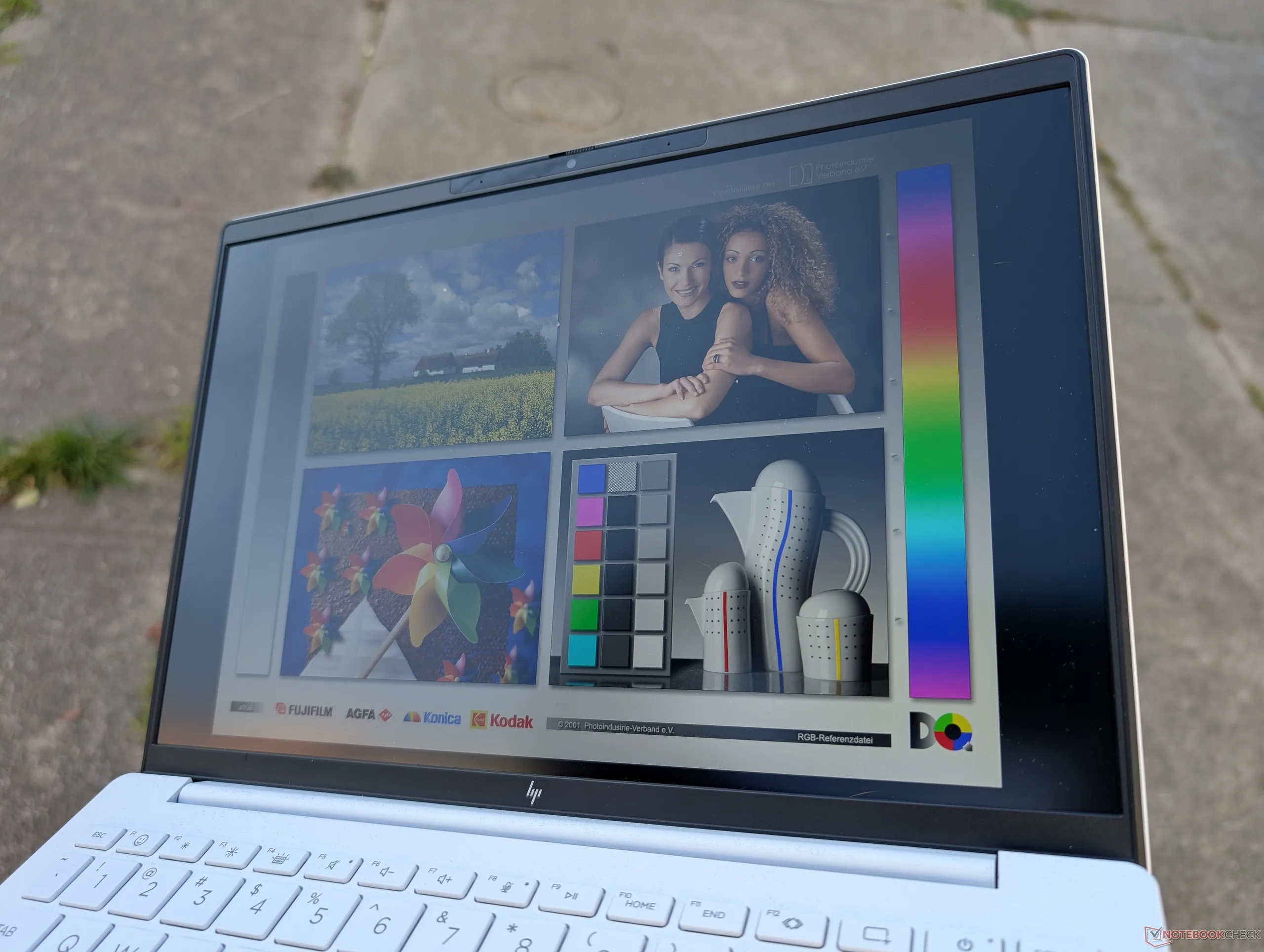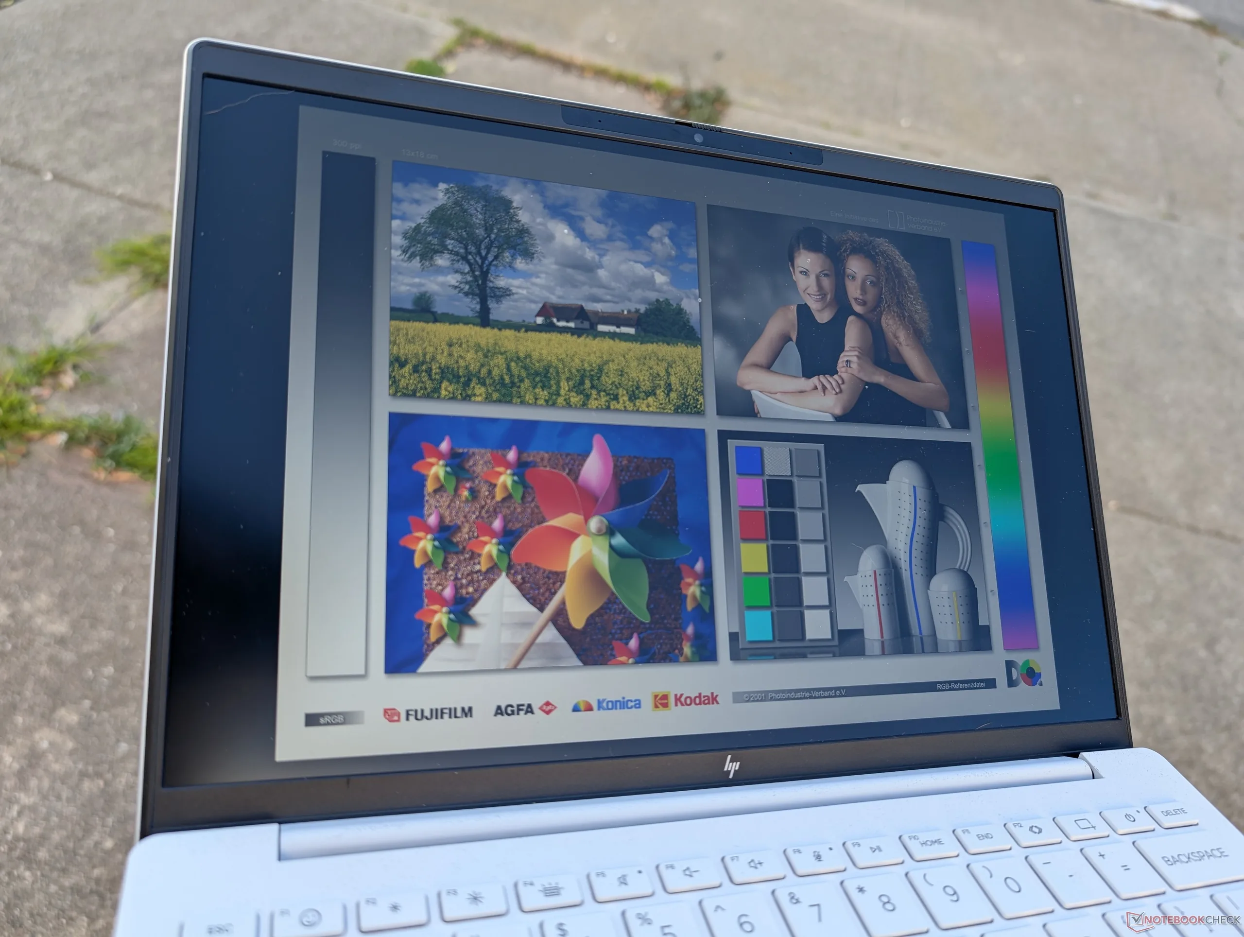 A panelek meglehetősen alapszintűek más szubnotebookokhoz képest, ahol az OLED, a HDR-támogatás és a magasabb képfrissítési frekvencia gyakori. Az OmniBook Ultra vagy az OmniBook X például több olyan vizuális funkciót kínál, mint az OmniBook 7 Aero 13, amelyet a multimédiás felhasználók értékelnének. A megtekintési élmény itt tehát jó, de semmi különleges. Azt azonban értékeljük, hogy a teljes sRGB-lefedettség alapfelszereltség, függetlenül attól, hogy a felhasználók milyen konfigurációt választanak.
