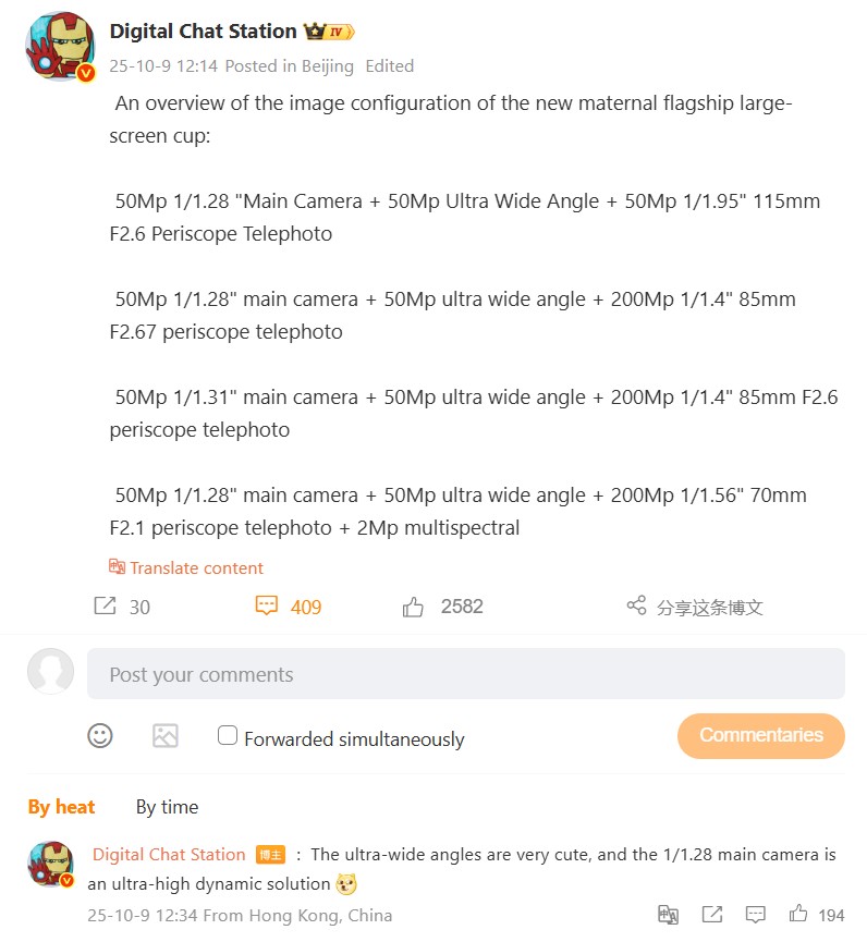 A rejtélyt azonban elég könnyű megoldani, ha áttekintjük az elmúlt hetek kiszivárogtatásait. Az egyik dolog, amit nem vesznek figyelembe a specifikációk összehasonlításánál, az az 50 MP-es ultraszéles látószögű objektív, ami minden esetben elég "aranyos", ahogy az egyik hozzászóló megjegyzi. Természetesen a fotók egyéni stílusát sem veszik figyelembe, amit mostanában erősen befolyásolnak a Xiaomi, a Vivo, az Oppo és a kamerapartnerek kamerái hamarosan Realme, nevezetesen a Leica, a Zeiss, a Hasselblad és a Ricoh GR. Aki szeretné a specifikációkat magukhoz a kamera zászlóshajókhoz hasonlítani, annak még mindig van rá lehetősége, mielőtt a képernyőkép alatt elmagyaráznánk
