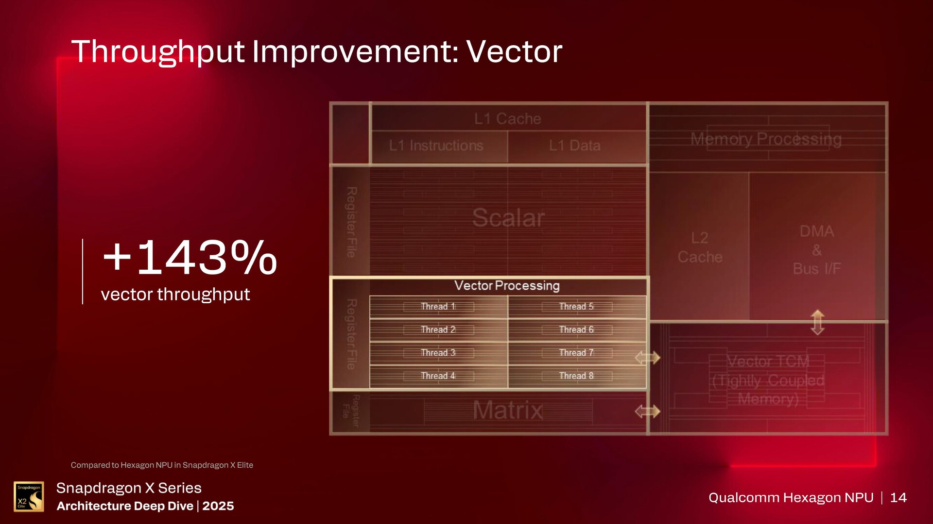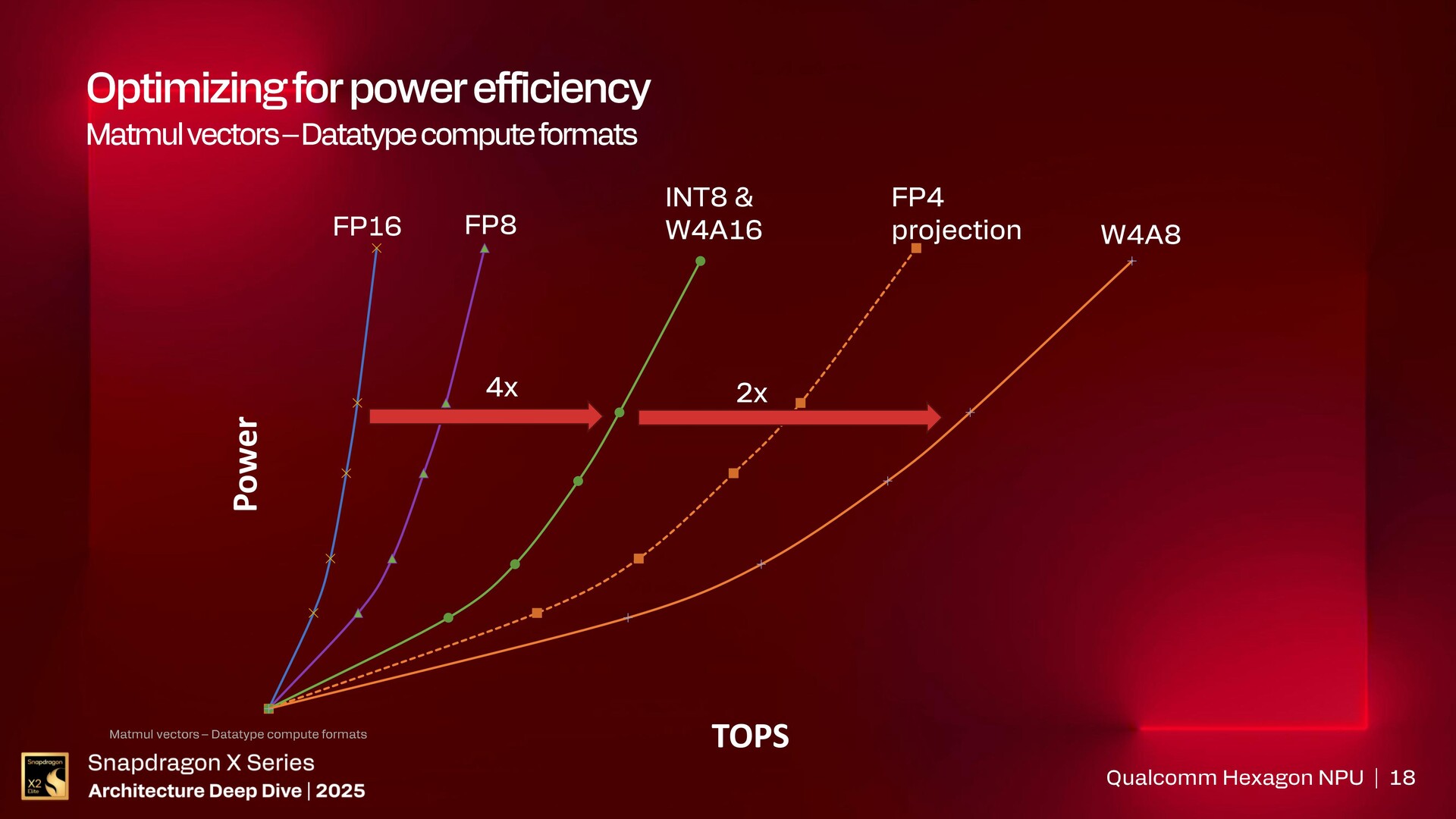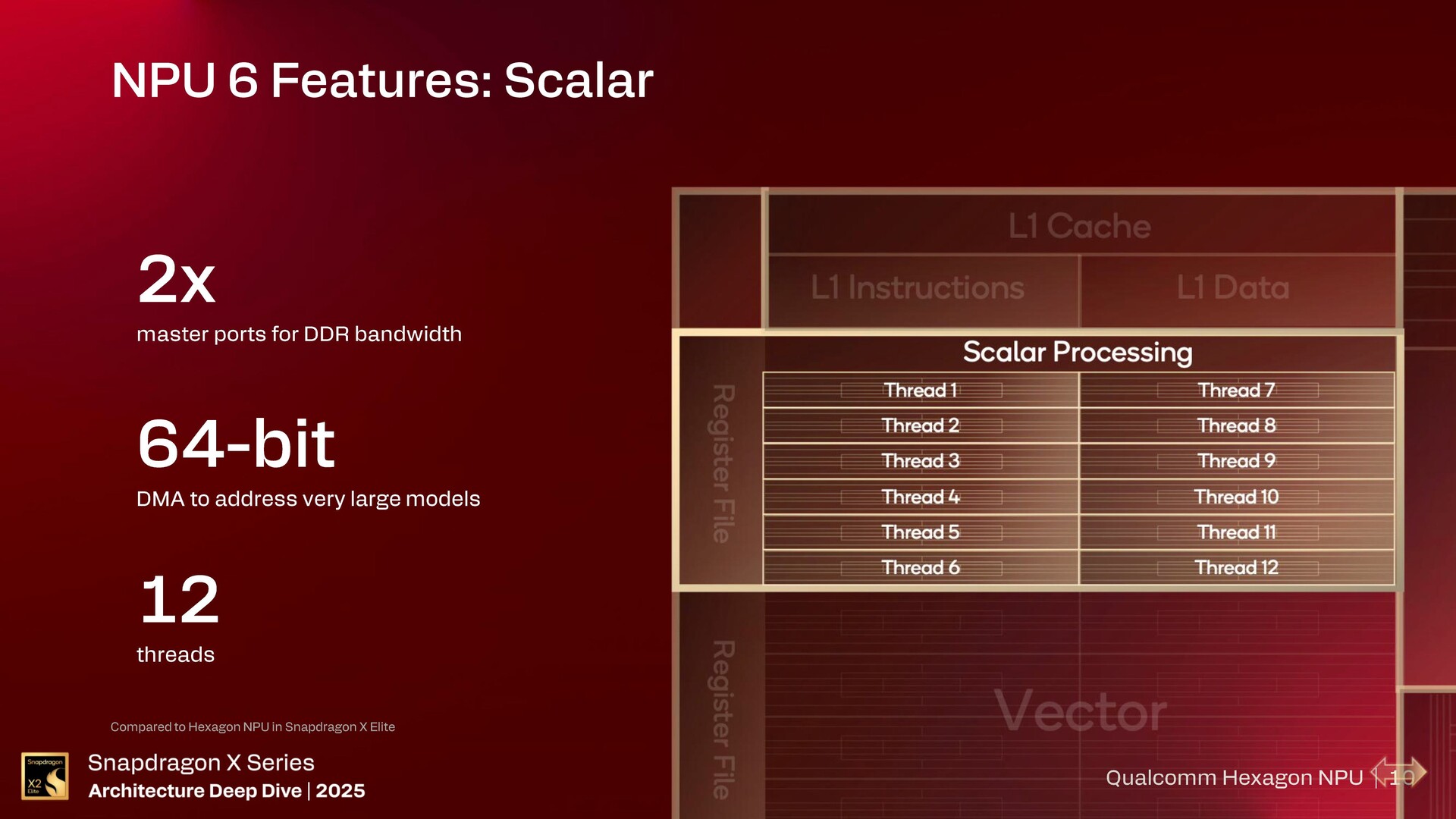 A Qualcomm részletezte, hogy a Hexagon eredetileg digitális jelfeldolgozóként indult, amely elsősorban skalárfeldolgozást végzett, majd a jelenlegi NPU 6-os formában vektor-, egész szám és FP16 mátrixgyorsítást is végez.