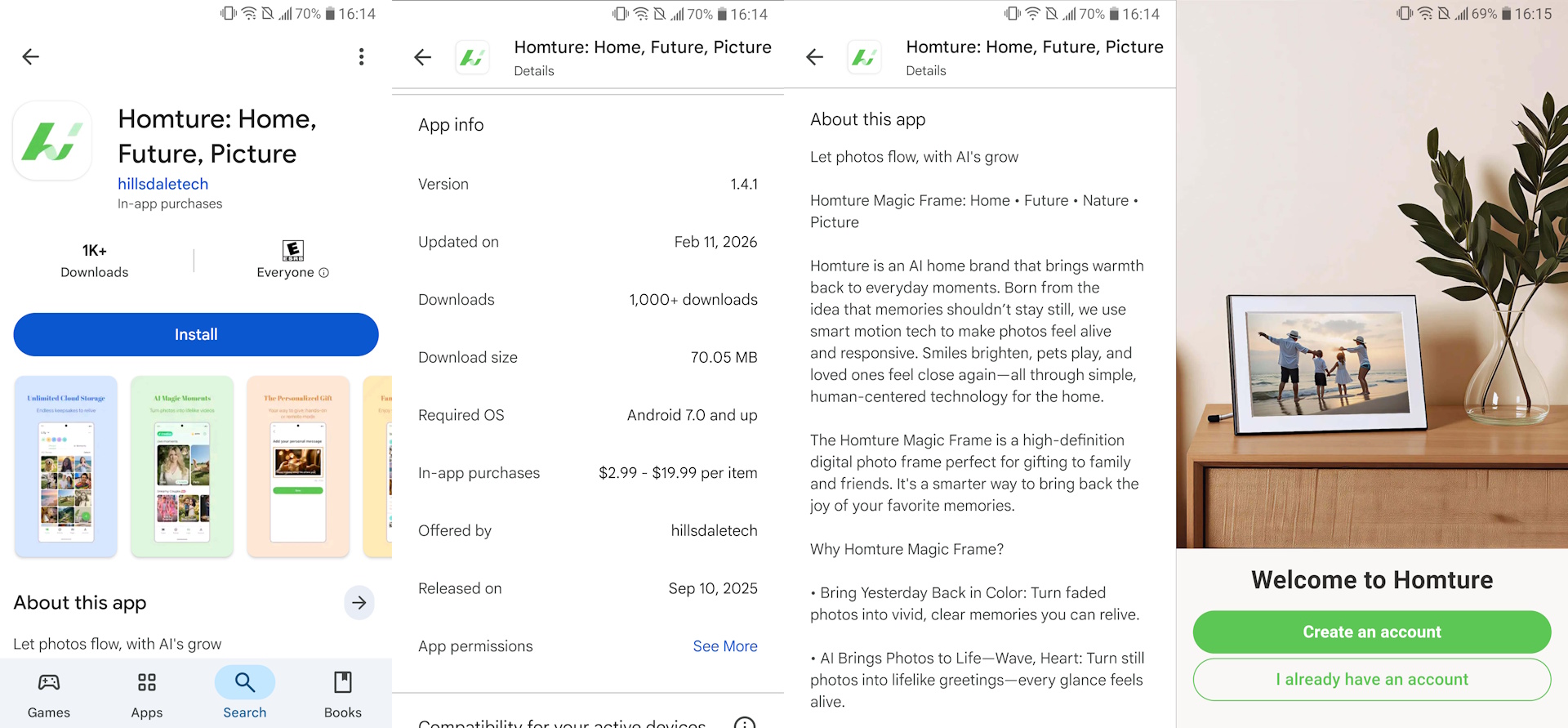 A Homture képkeret szórakoztató módját kínálja az otthon díszítésének a megbecsült, felújított és animált fotókkal, a barátok és a család távoli feltöltésével.