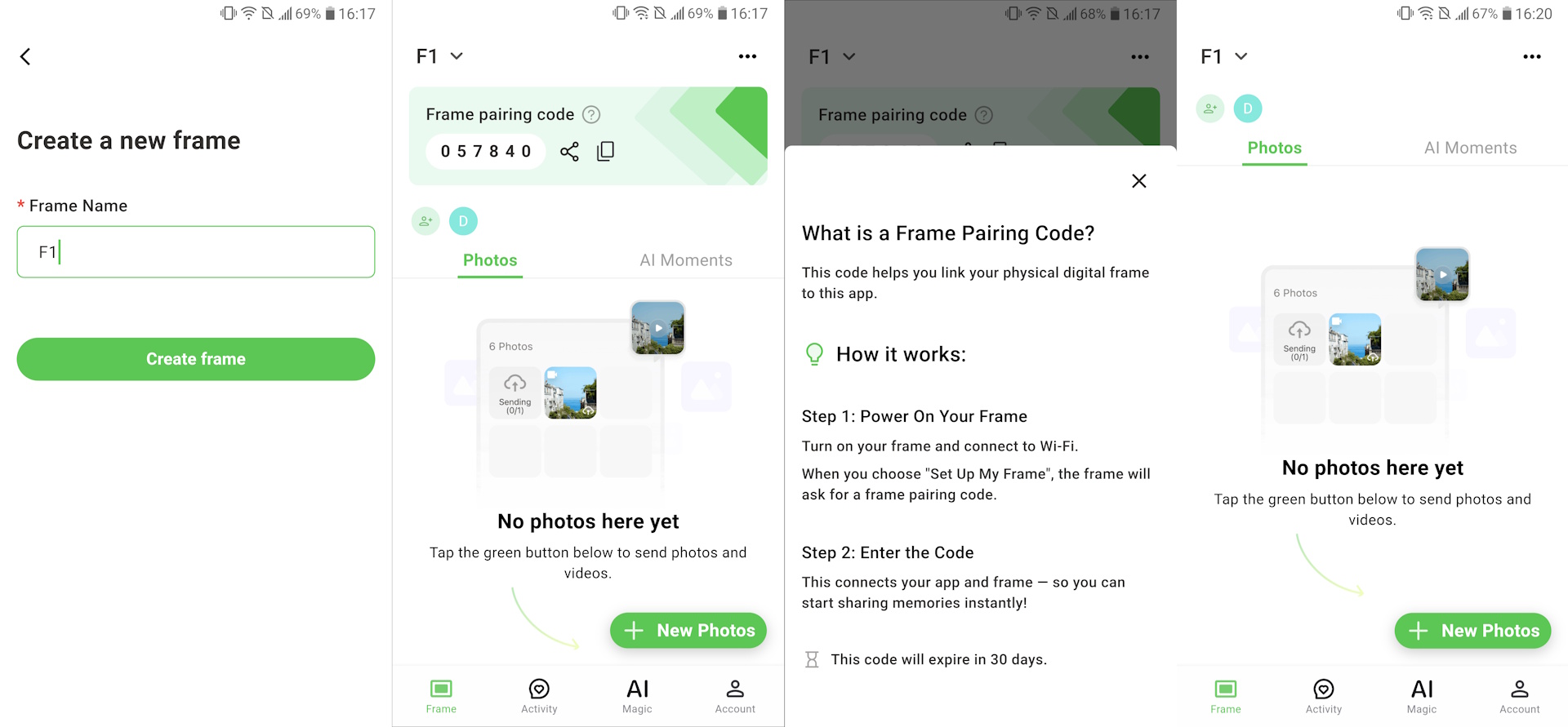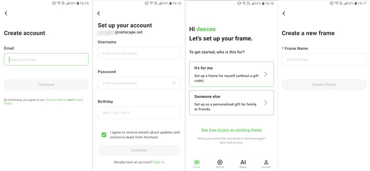 A szoftver nagyon könnyen telepíthető, és a fiók létrehozása után a képkeret hozzáadásához csak egy hatjegyű párosító kódot kell megadni.