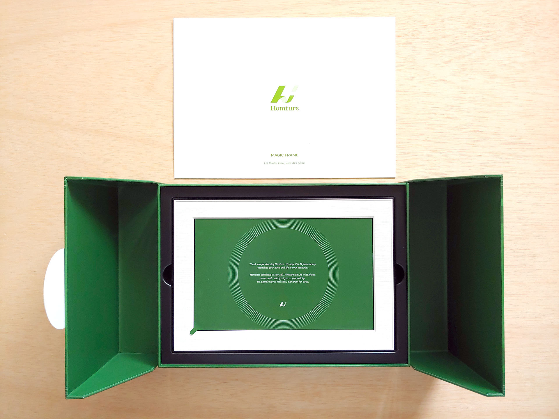 A Homture Magic Frame korlátlan mennyiségű fényképet jelenít meg, amelyeket mesterséges intelligenciával lehet animálni, és a barátok és a családtagok távolról frissíthetik az új fényképeket.