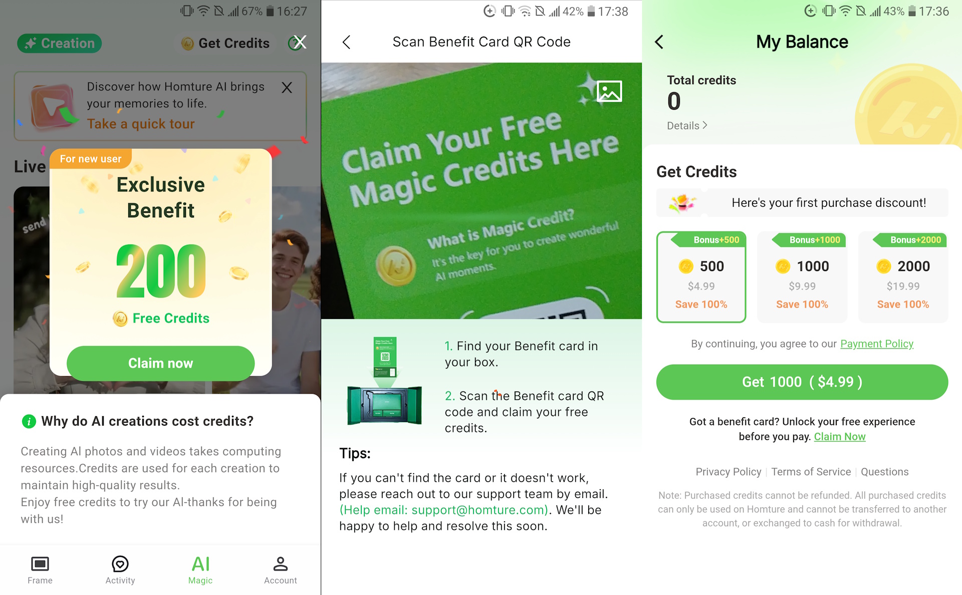Egy fénykép animálása mesterséges intelligencia használatával 100 érmébe kerül. A kerethez 2000 ingyenes érme jár egy ingyenes Magic Credits kártyán, és minden új alkalmazás-felhasználó 200 érmét kap. A további kreditek 500 érméért 4,99 dollártól indulnak.