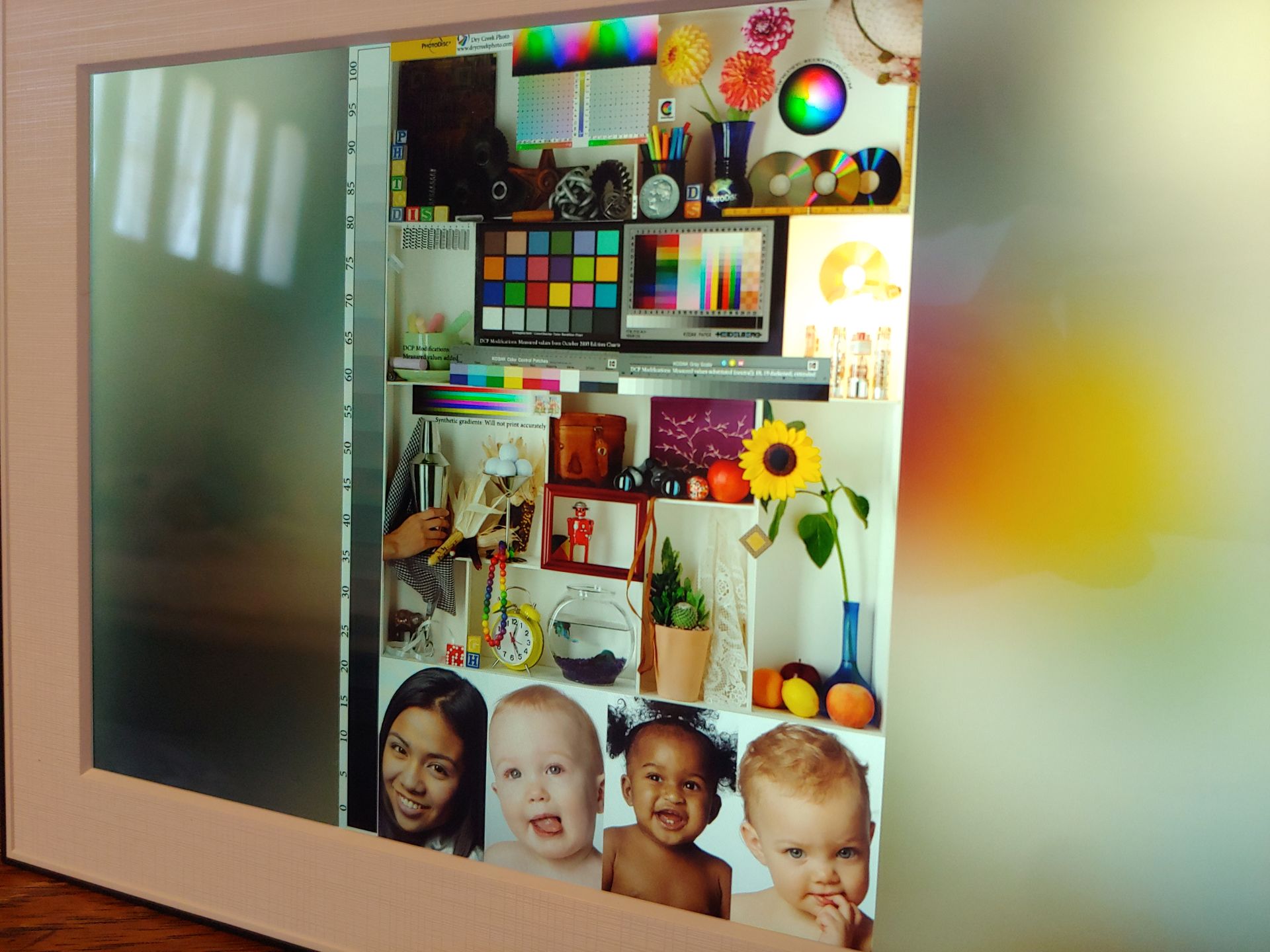 A Homture Magic Frame remekül mutat beltérben, szobalámpa fényében vagy egy árnyékos ablak mellett, a képminőség pedig hasonló egy közönséges fényes monitorhoz vagy HDTV-hez. A fényes kijelző erős tükröződésgátló bevonattal rendelkezik, amely segít csökkenteni a fényes fények visszaverődését, miközben fokozza a színek élénkségét. Mint minden LCD-panel esetében, a kép fényereje csökken, ha a Magic Frame-et nem középen nézzük.
