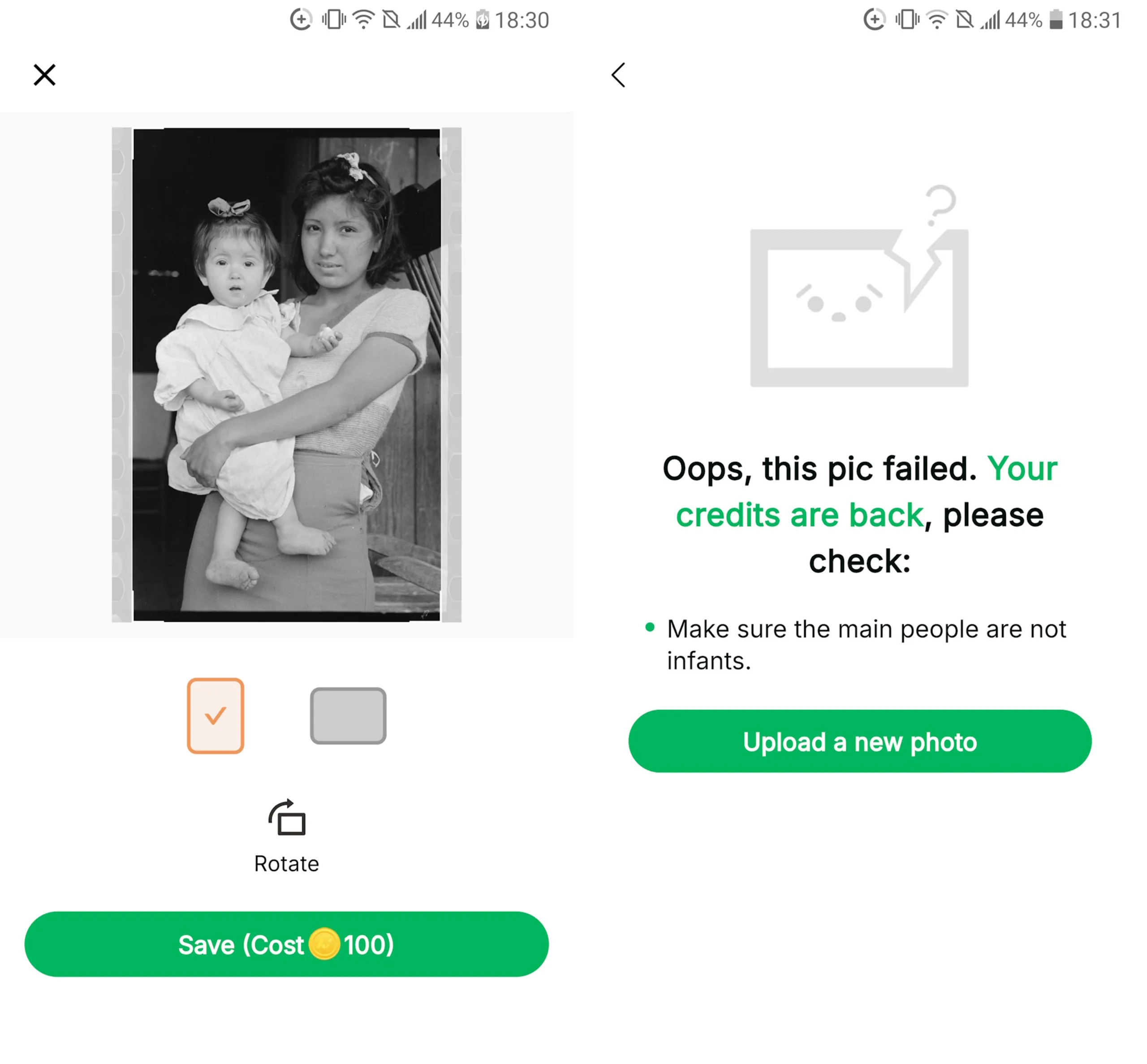 A fekete-fehér vagy sérült fényképek is javíthatók, színezhetők és animálhatók. A helyreállítás minősége magas, és a generációk meglepően sok részletet tartalmaznak még alacsony felbontású eredetiek használata esetén is.