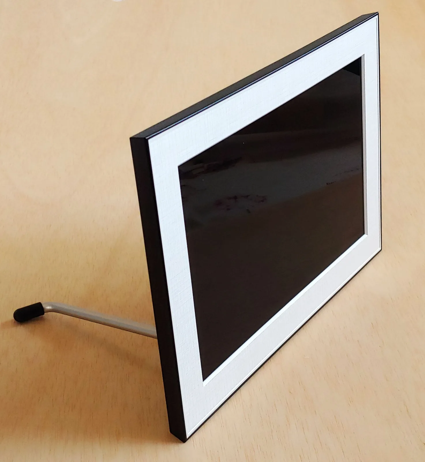 A képkeret egy online eszköz, SD-kártya foglalat vagy USB-port nélkül, így új fényképek nem adhatók hozzá offline. A kijelzőn szögtől eltérő nézet esetén a tipikus LCD szín- és fényerőeltolódás tapasztalható, és a fényes képernyő erősen visszaveri a napfényt.