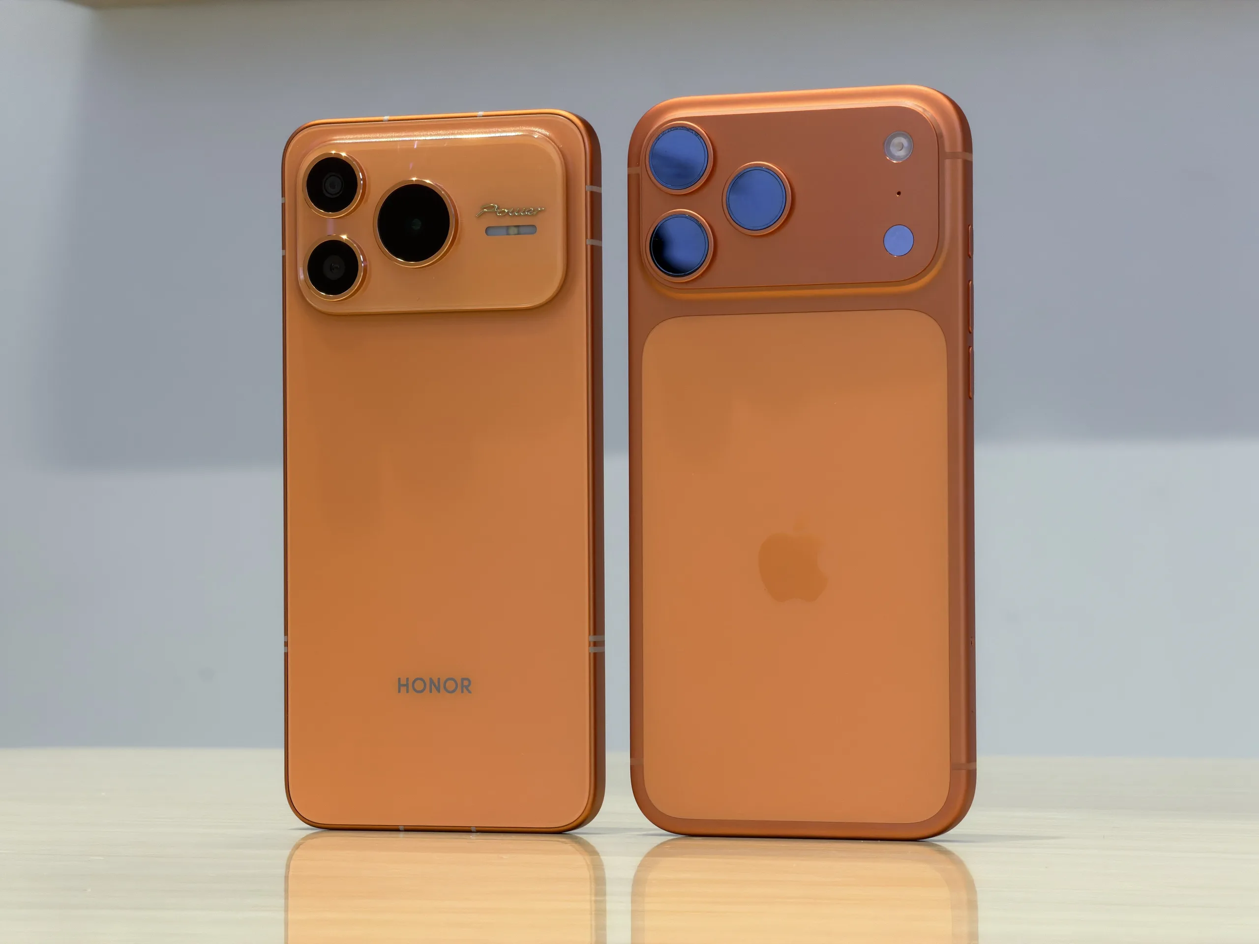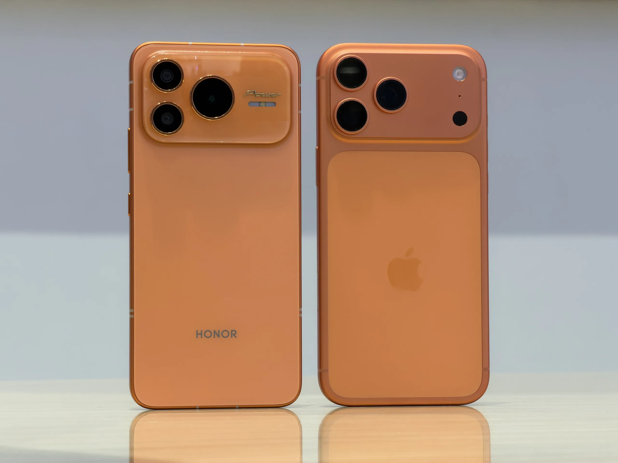 Egy dolgot el kell ismerni a Honor oldalon: a merészség kifizetődik, mert aligha van olyan középkategóriás kínai okostelefon, amely karácsony óta olyan gyakran szerepelt a közösségi médiában és a globális hírportálokon, mint a Honor Power 2, amely nagyon hasonlít a Power 2-re iPhone 17 Pro-hoz és amelyet nemrég mutattak be hivatalosan Kínában. Különösen a narancssárga színváltozat hátsó kameramodulja hasonlít feltűnően a Apple zászlóshajójához, amint azt a két, egyébként nagyon különböző készüléket összehasonlító gyakorlati fotók is mutatják. A két modell csupán az iPhone kéttónusú megjelenésében, a "Power" logóval ellátott, műanyagosabbnak tűnő kameramodulban, a különböző lencseméretekben és az érzékelő/LED pozíciókban, valamint természetesen a Apple logóban és a Honor feliratban különbözik egymástól.