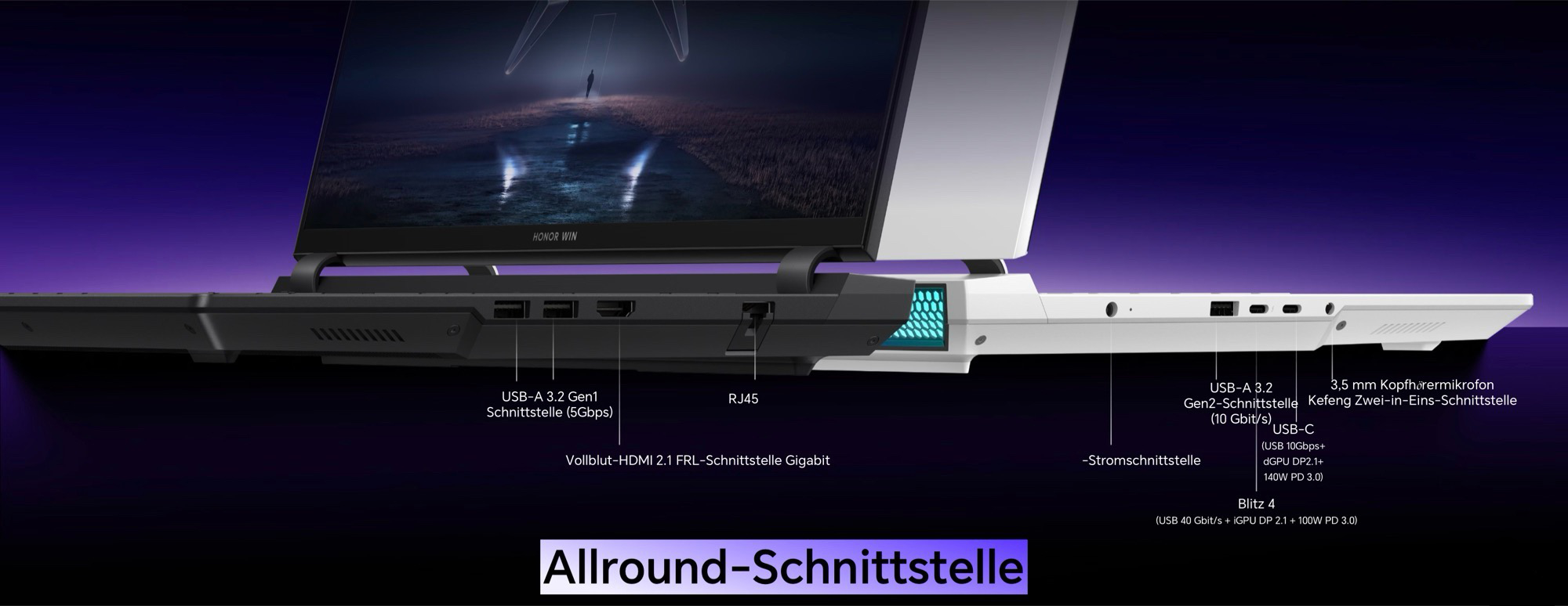 Ebből legfeljebb 140 wattot kell kiosztani a Nvidia GeForce RTX 5070 Ti Laptop GPU, a többit a Intel Core Ultra 9 290HX Plus. Honor egy 16 hüvelykes, 16:10 formátumú IPS panelt használ, amely 2560 x 1600 pixeles felbontást, 500 nites fényerőt és 300 Hz-es képkockasebességet kínál; a Honor szerint a DCI-P3 színtér teljes egészében megjeleníthető. Az akkumulátor kapacitása 92 Wh. A Thunderbolt 4 (USB-C), USB-C 3.2 Gen 2, három USB-A porttal, HDMI 2.1 és Ethernet csatlakozókkal a laptop számos csatlakozási lehetőséget kínál.